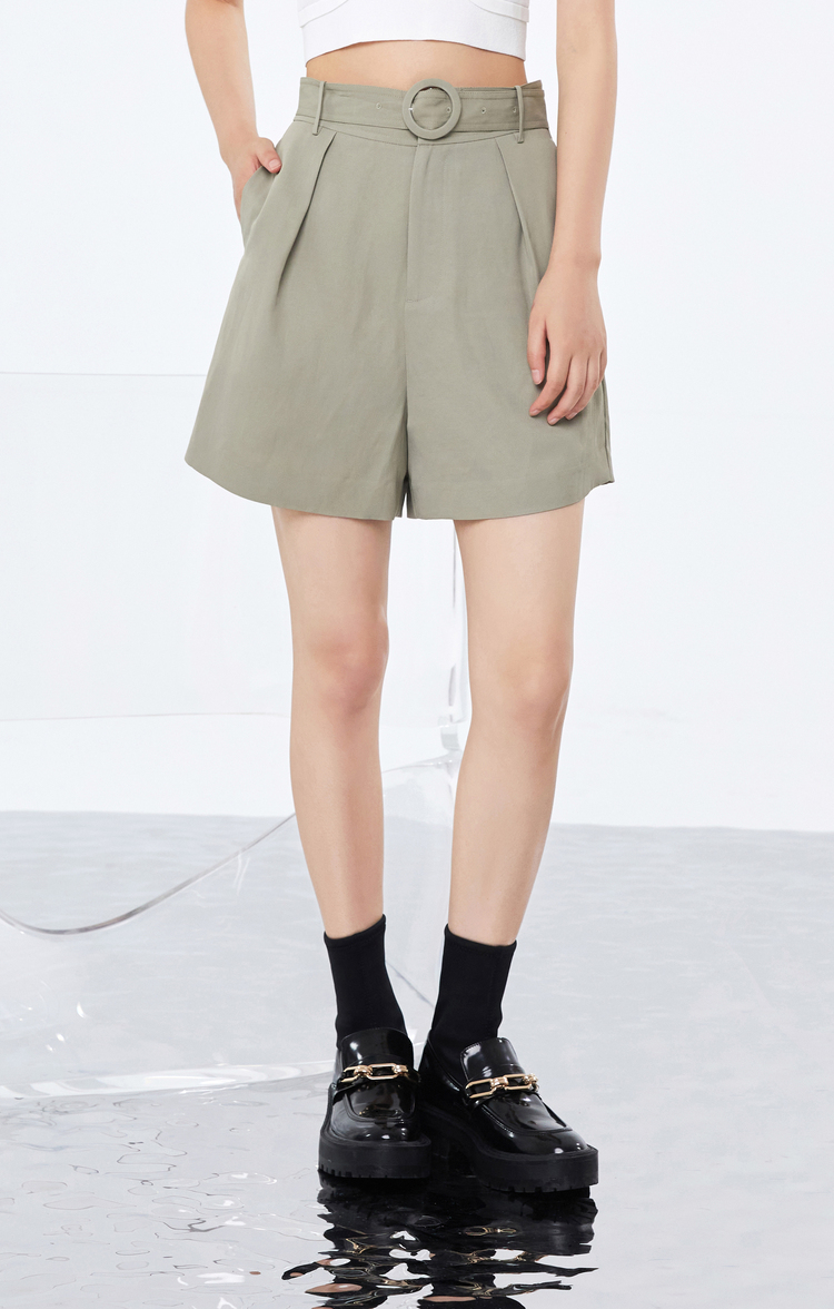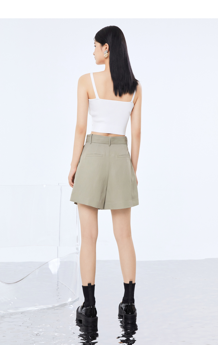 NEELLY纳俪商场同款新款短裤女立体打褶显瘦阔腿直筒裤系带收腰N22074H04406