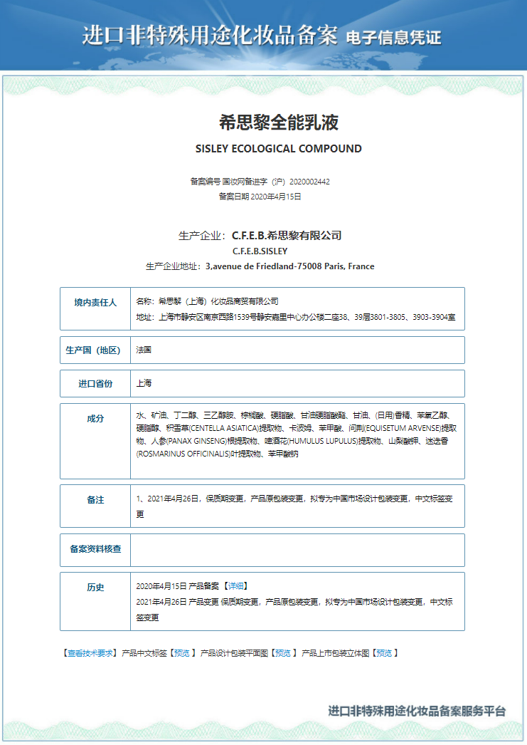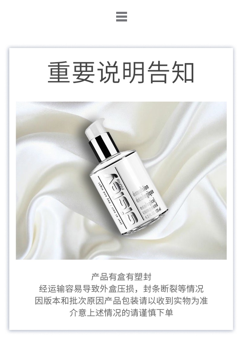 备案文号:国妆网备进字(沪)2022001979 产品介绍:希思黎全能乳液,一瓶多效,维稳修护;全能乳称得上“定制级全效养肤”,特有四重修护智慧,针对难以解决的皮肤问题,逐一将之终结;主要成分有积血草,帮助胶原蛋白形成;蛇麻草促进皮肤新陈代谢;人参提高肌肤免疫力刺激微循环;迷迭香杀菌舒缓镇静;马尾草收敛紧实肌肤。能持效呵护恢复肌肤水油平衡,强韧皮肤,防护抵御外部环境侵害,瞬间渗透后续护肤效果加乘,作为一个全效养肤智慧的护肤精品,它适合任何年龄,任何肌肤来使用,全面补充各种营养,持续强韧肌肤,让皮肤得到无微不至的呵护,让护肤效果1+1大于二。 产品功效:全力维稳、深沉滋养、保湿紧致。 使用方法:早晚清洁肌肤后涂抹于面部和颈部肌肤,单独使用或使用其它护肤品前使用。 30ml生产批号:274018 30ml限期使用日期:2026-01 10ml生产批号:274088 10ml限期使用日期:2026-01 注意事项:因个人肤质不同,如有不适,请立即停止使用。避免直接触及眼睛,如不慎入眼,立即用清水冲洗。使用后盖好盖子,请置于婴幼儿触及不到之处,请勿于极高温度、极低温度下或日光直射处存放。 |
