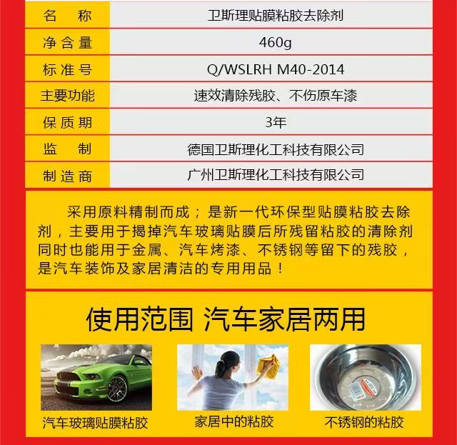卫斯理脱胶除胶剂不干胶清除剂家用不锈钢贴膜脱落剂汽车残胶去除