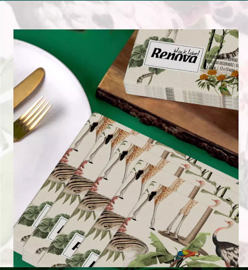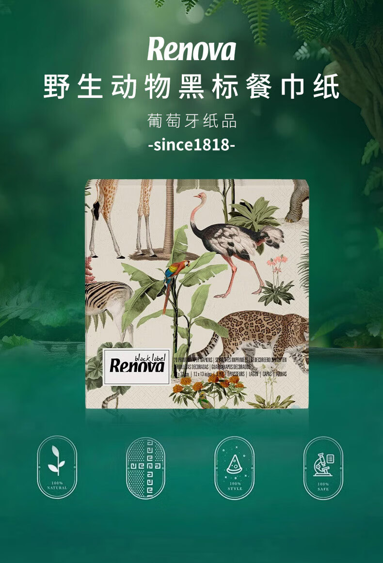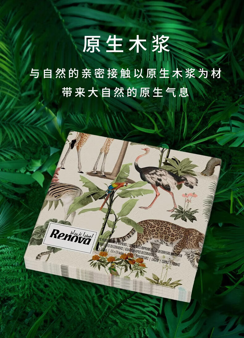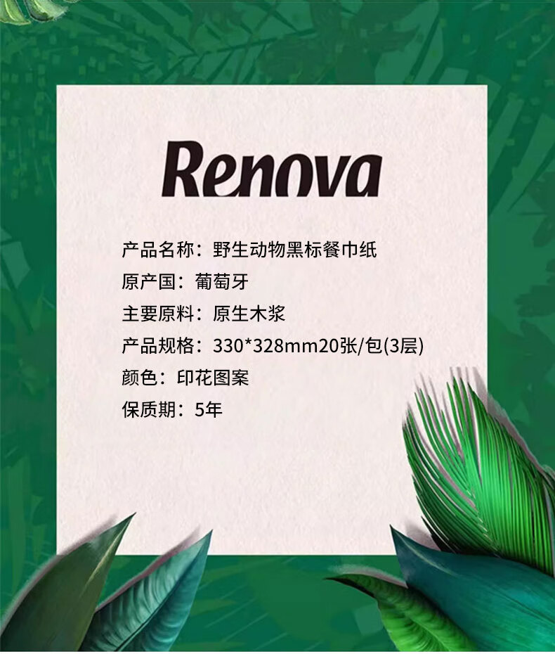 RENOVA野生动物黑标餐巾纸/118029 原生木浆20张/包 3层