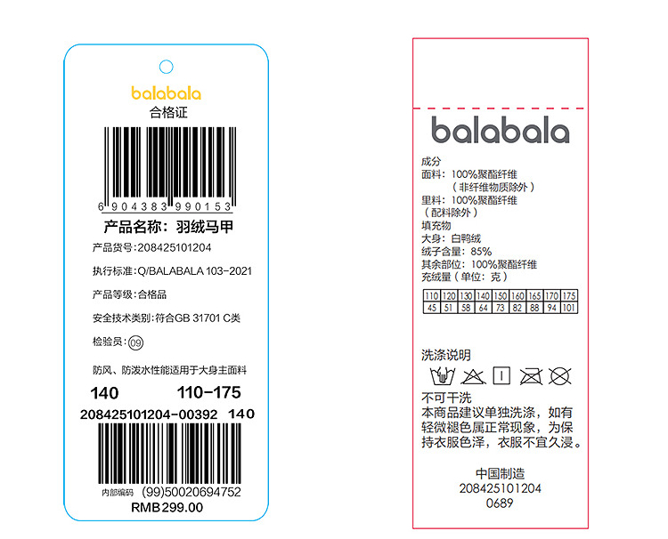 巴拉巴拉balaOne儿童马甲女童男童外套上衣新款童装2025冬高充绒
