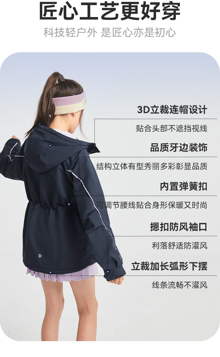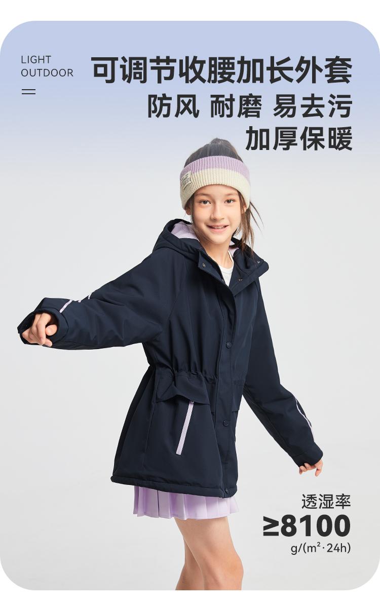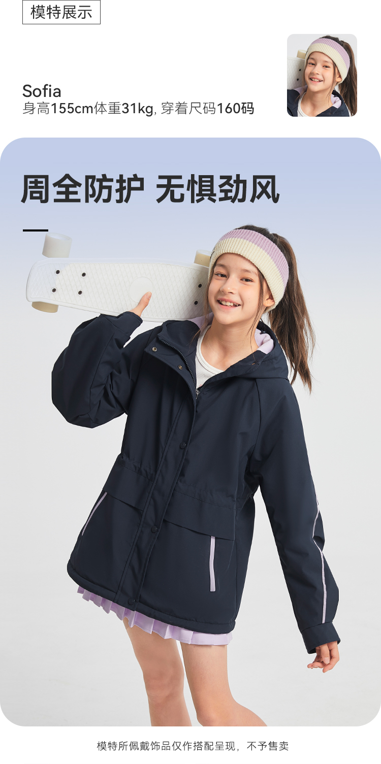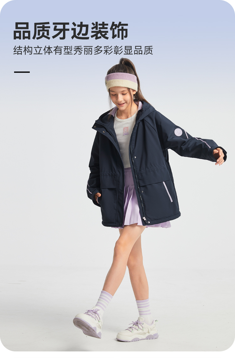水孩儿童装2024秋冬女童风衣中大童外套运动户外休闲防风保暖时尚