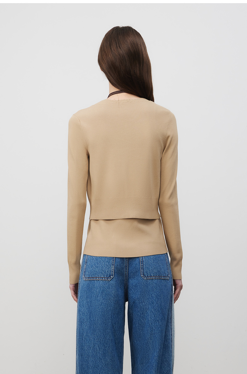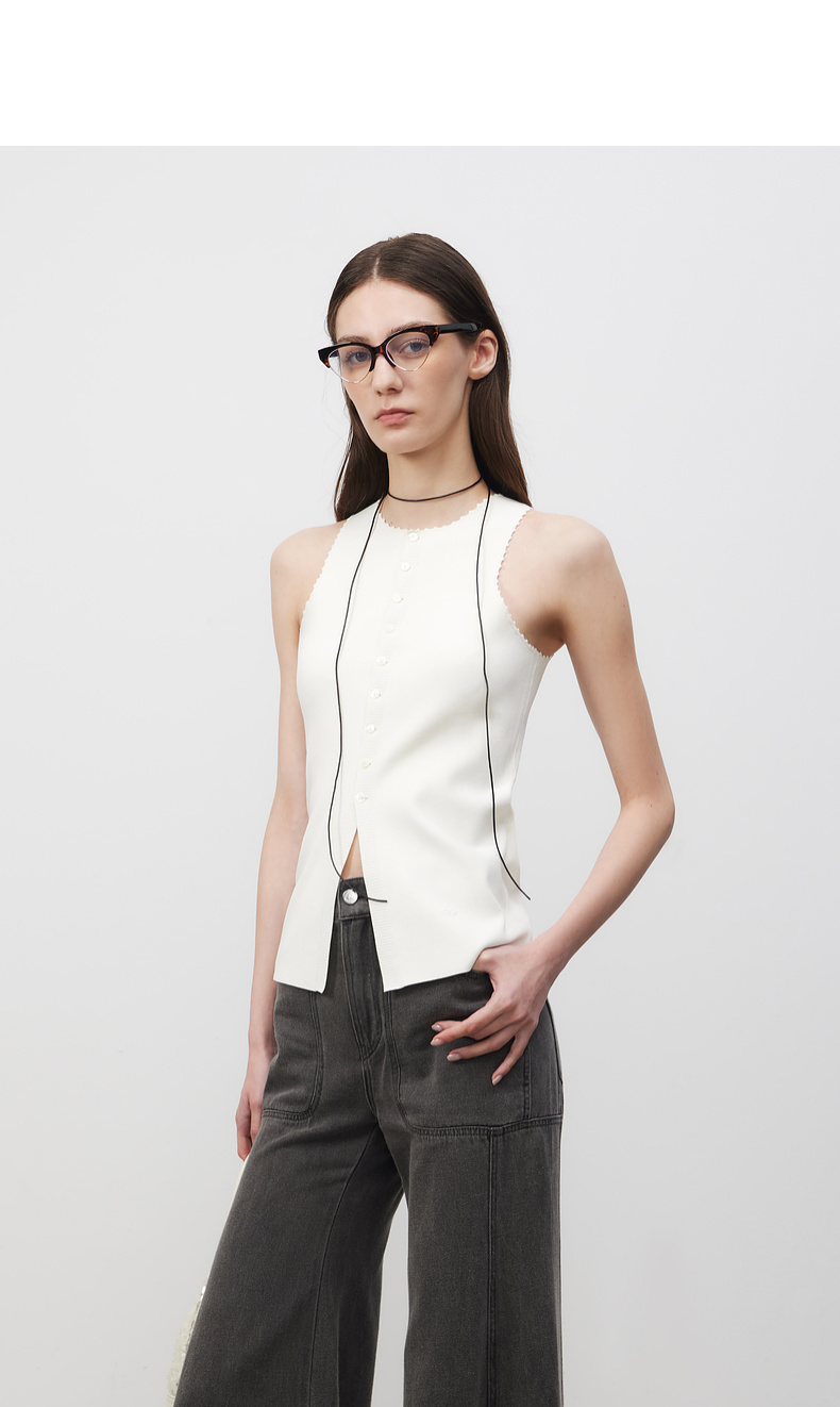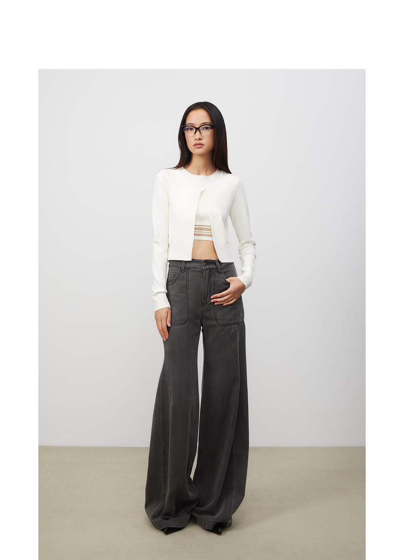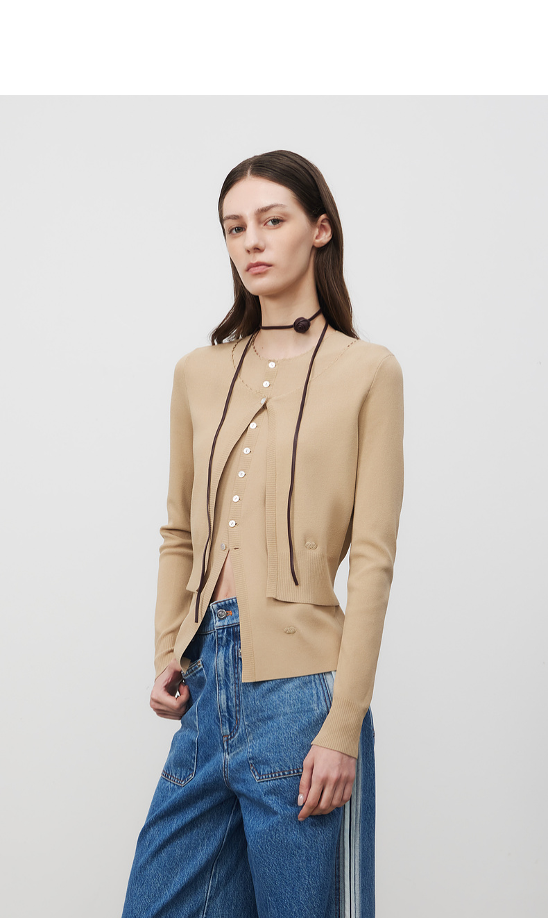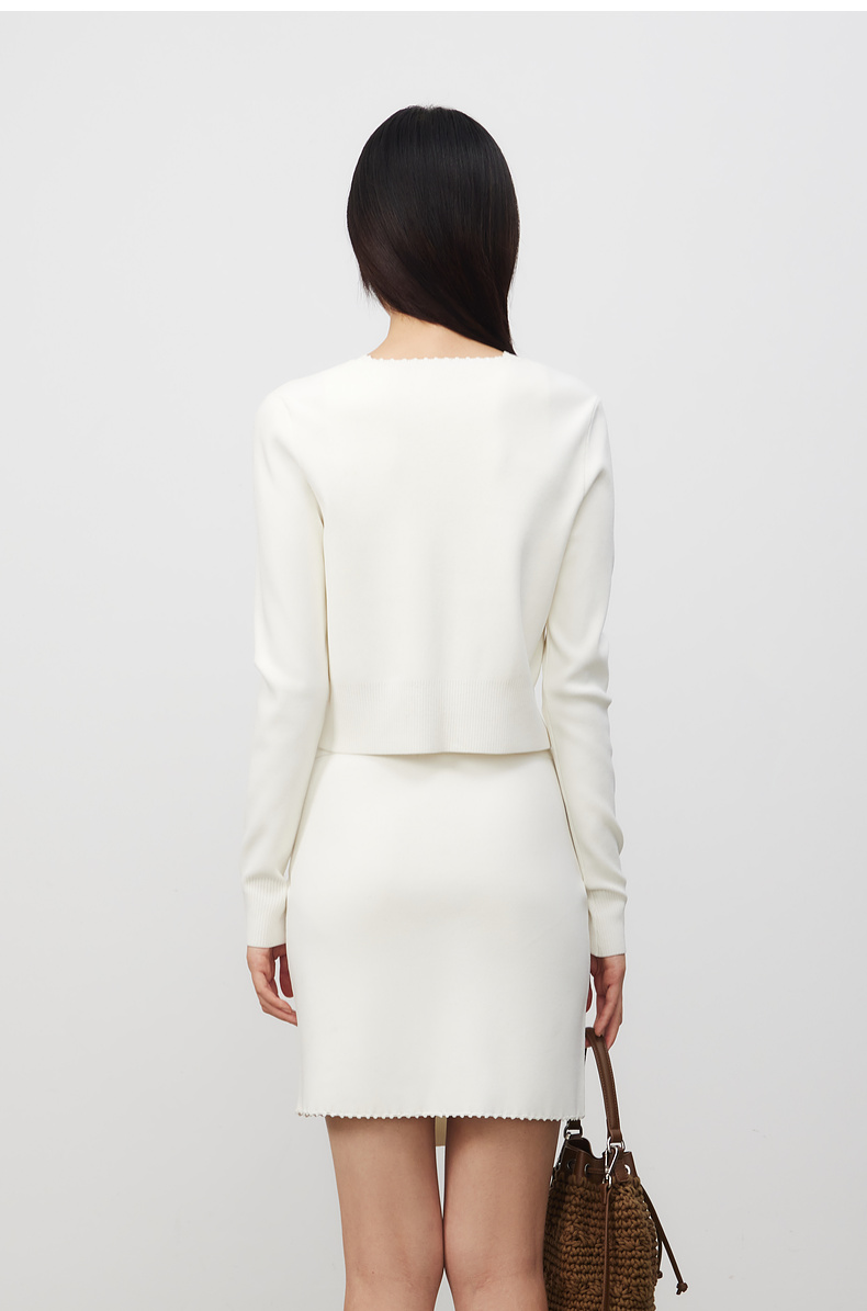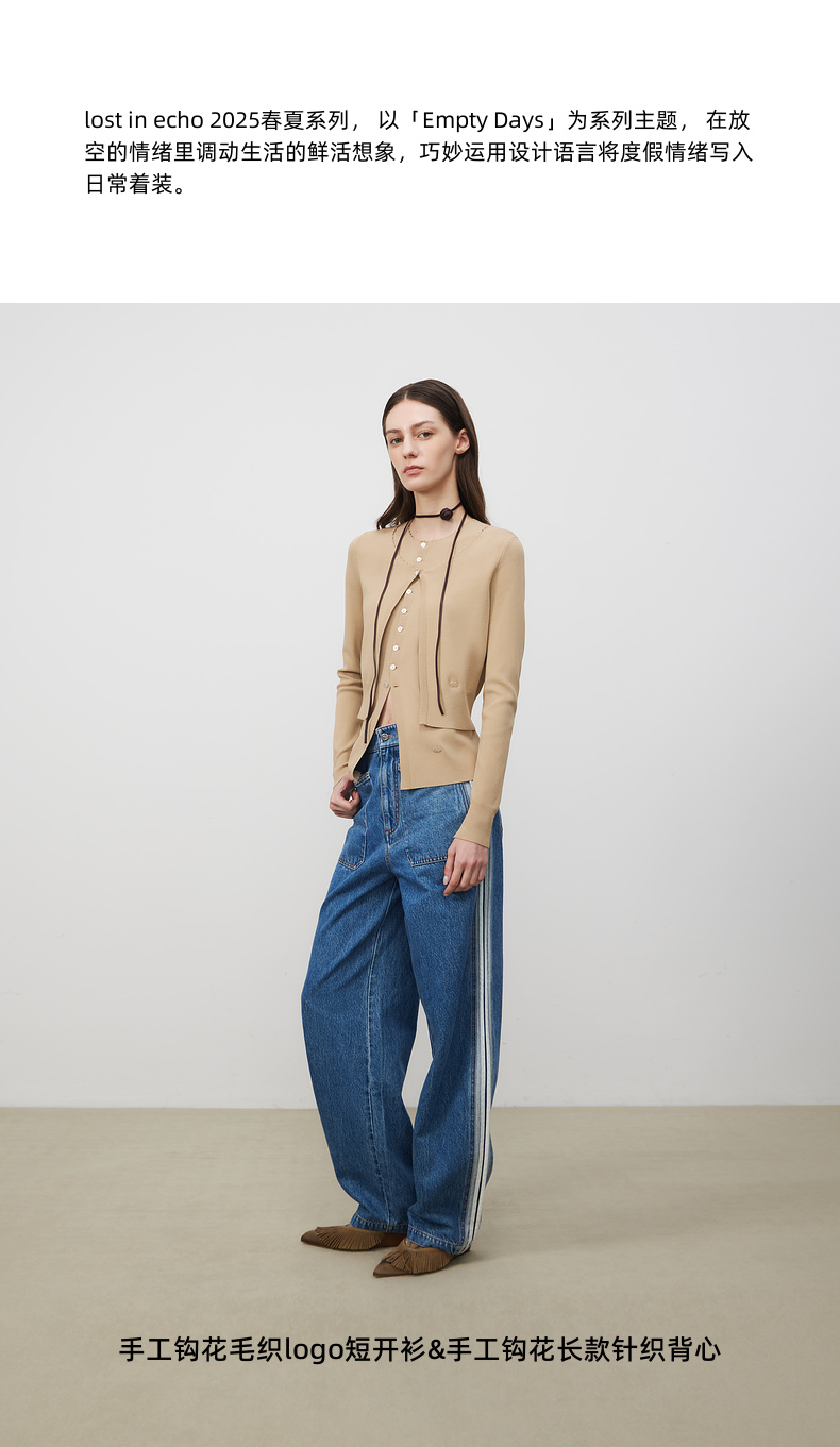 lost in echo2025春夏新款极简手工钩花短针织衫开衫背心套装女