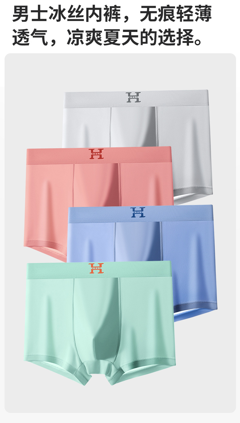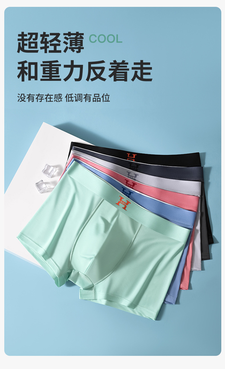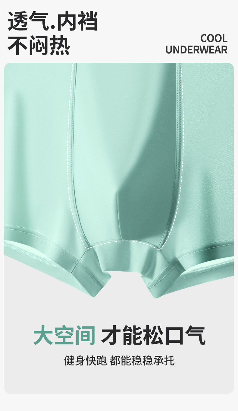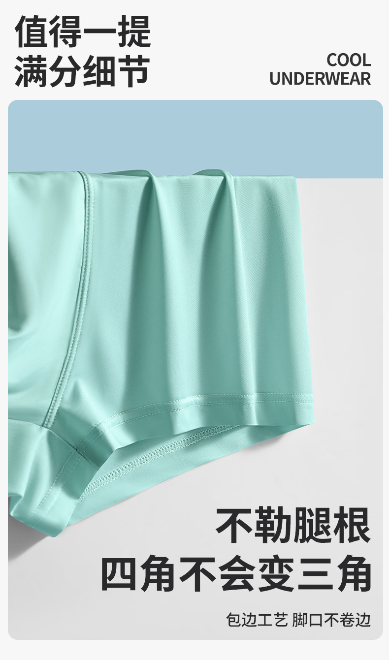 【59元拍4条】宝娜斯男士超薄凉感无痕内裤 丝光凉感透气平角内裤