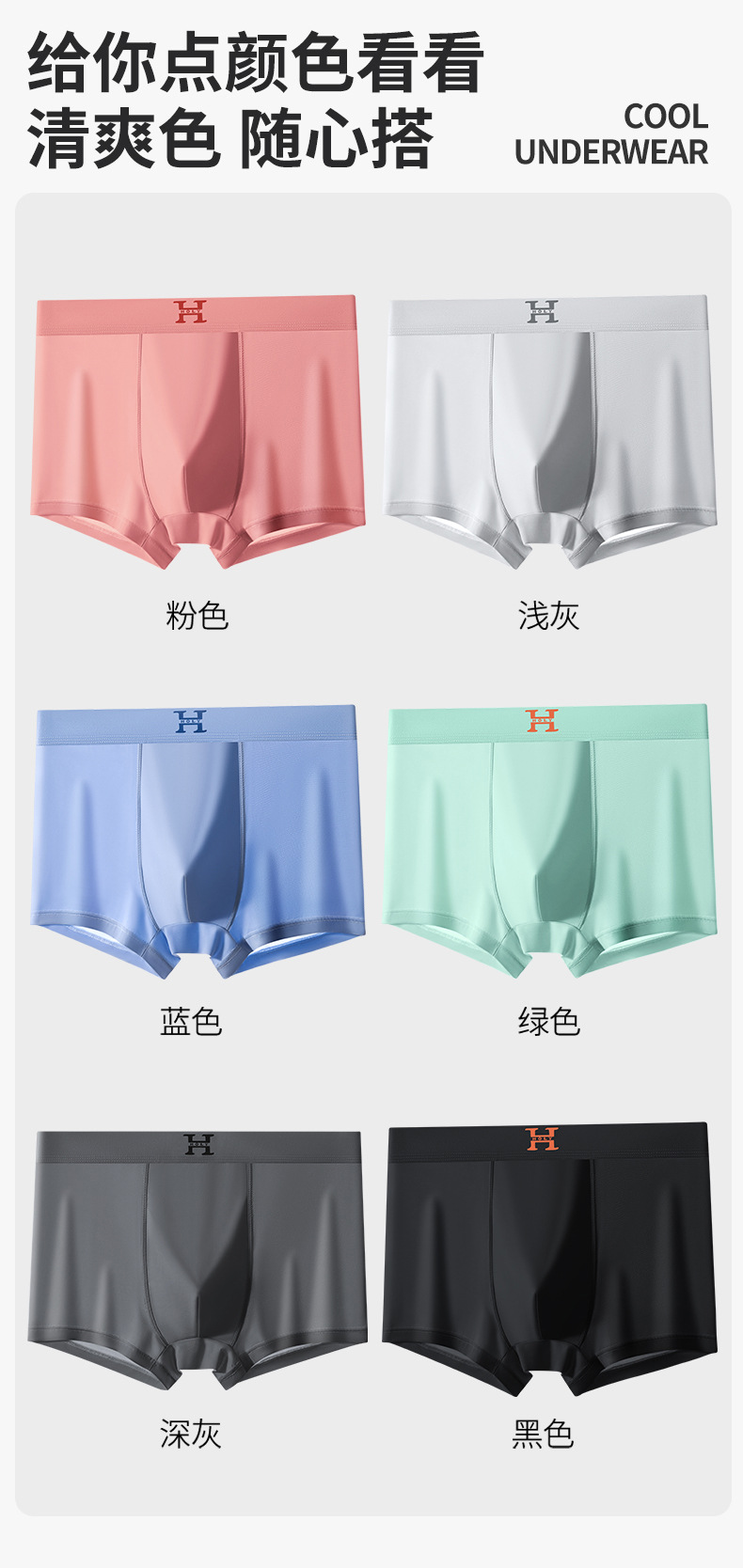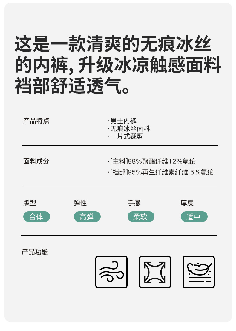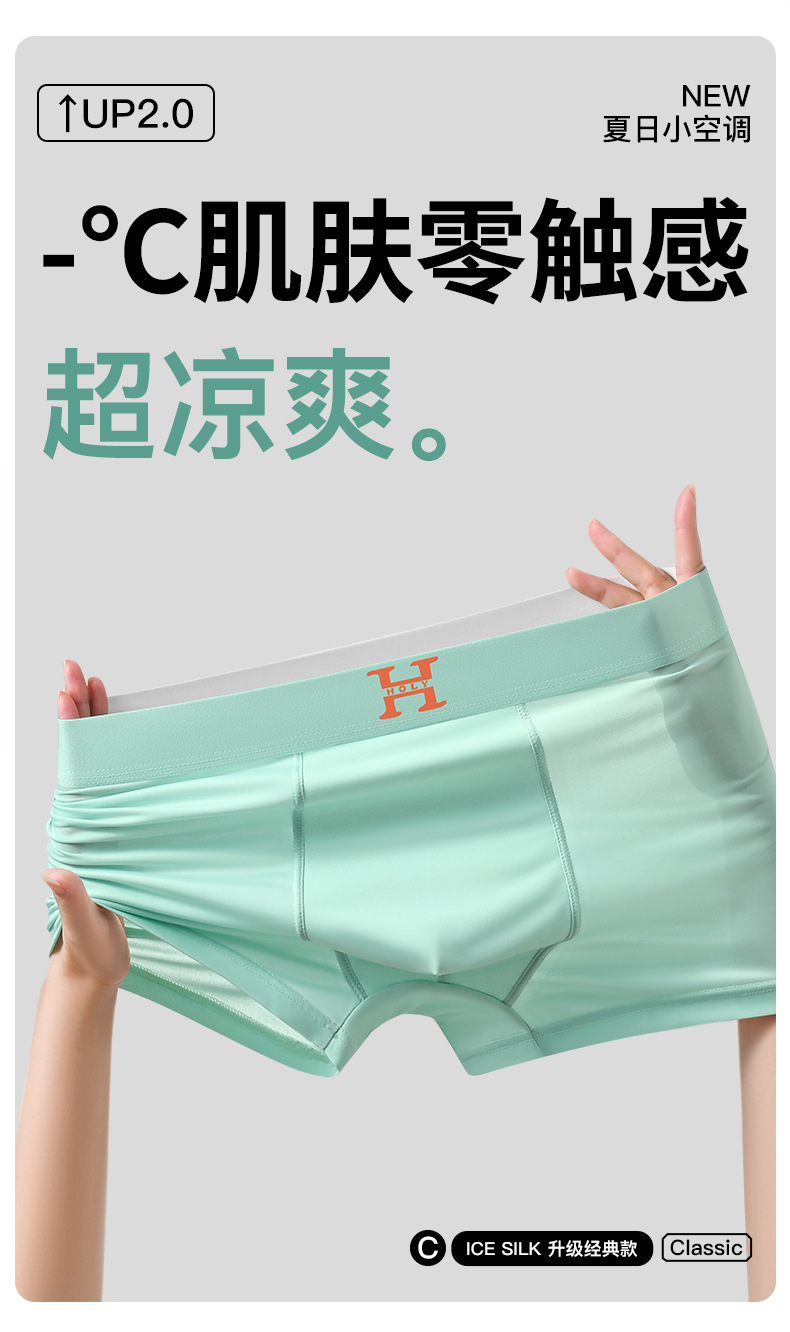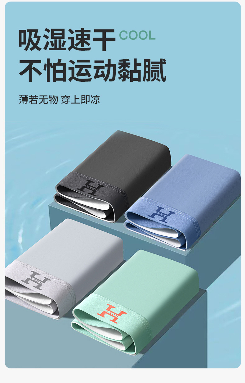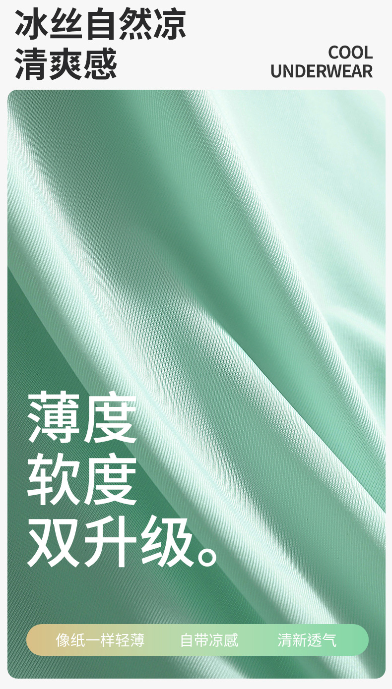 【59元拍4条】宝娜斯男士超薄凉感无痕内裤 丝光凉感透气平角内裤