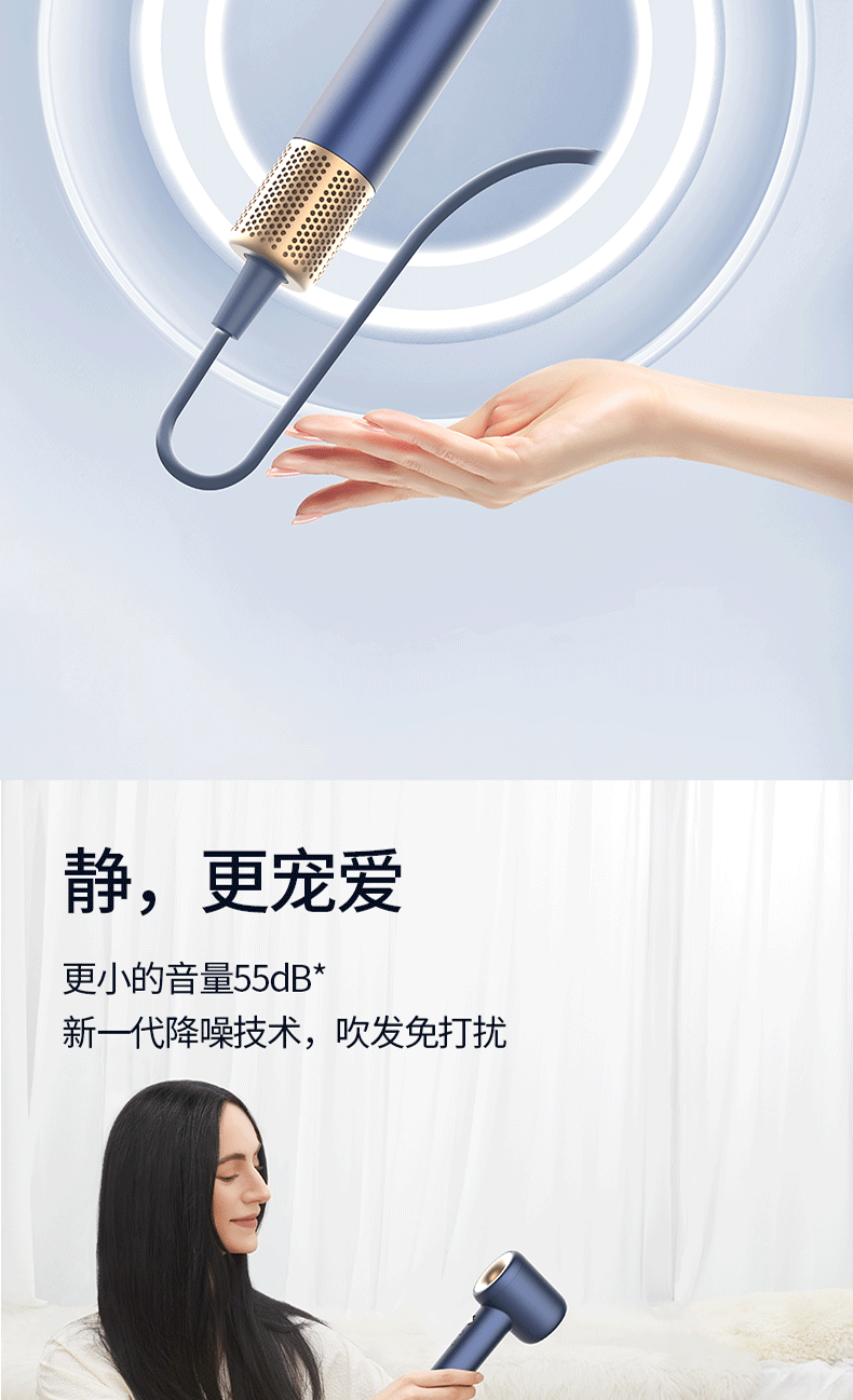 酷鲨HD10礼盒版(群青蓝)吹风机护发高速吹风机家用 电吹风 中空无叶大功率负离子速干低噪护发