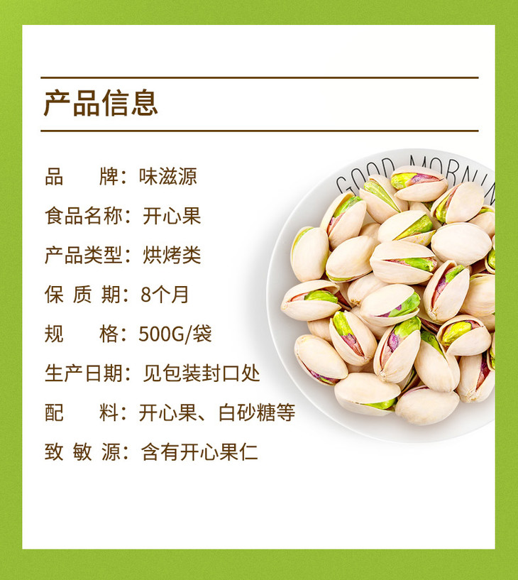 味滋源开心果500g/袋 无漂白坚果 【分销】
