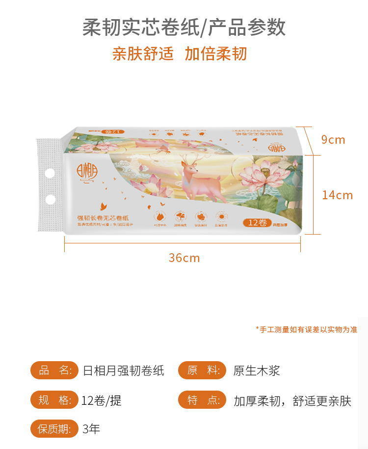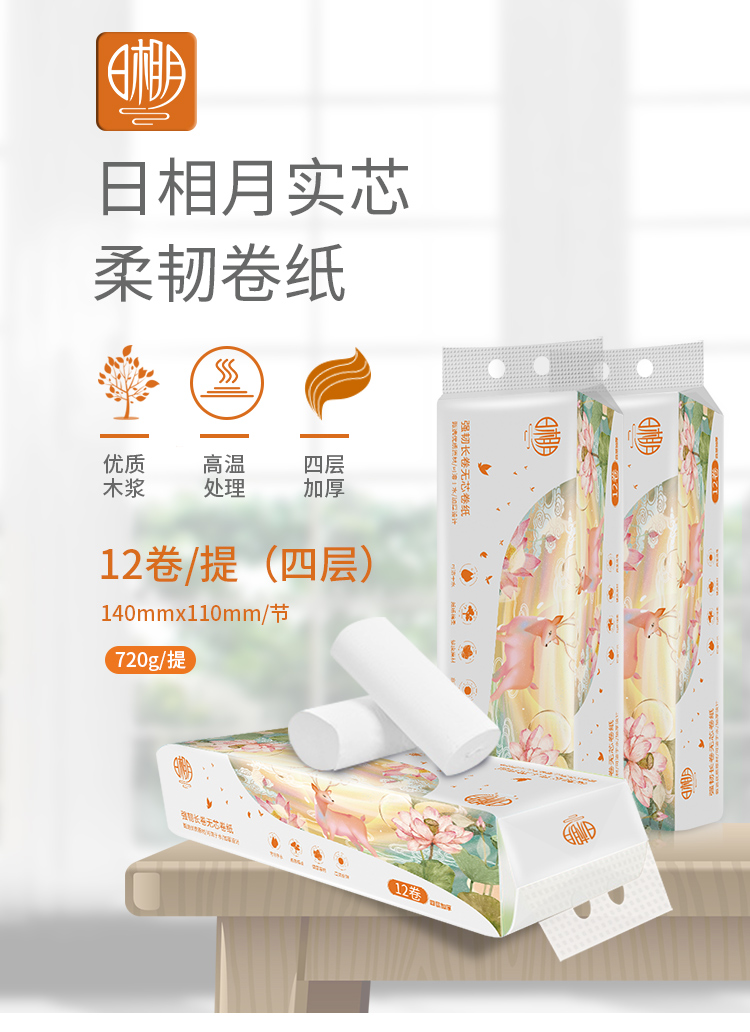 日相月小鹿系列卷纸12卷4层加厚家用卷纸730克 1269-1
