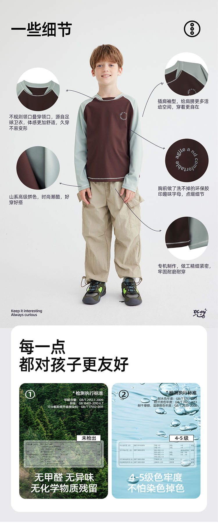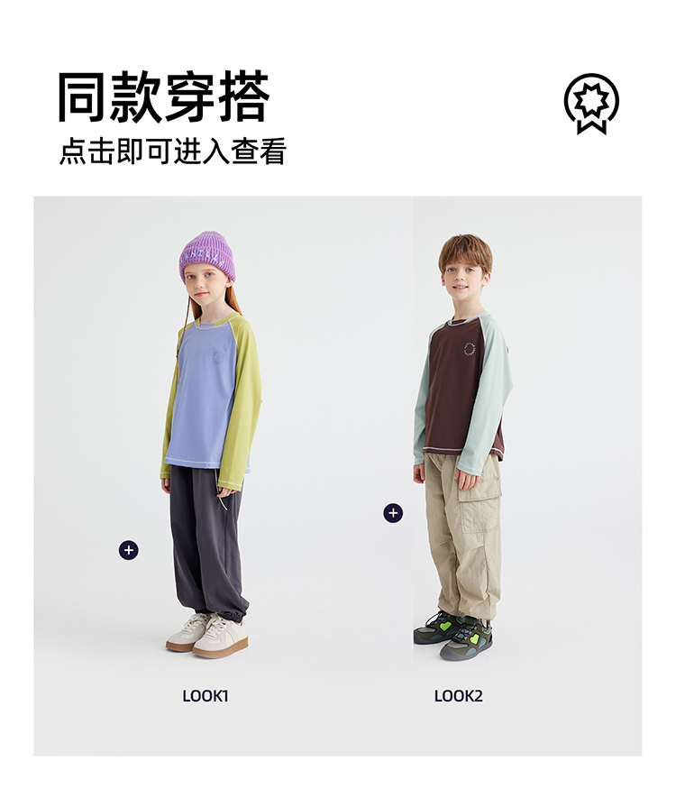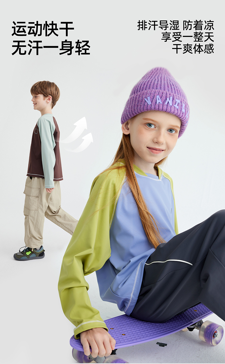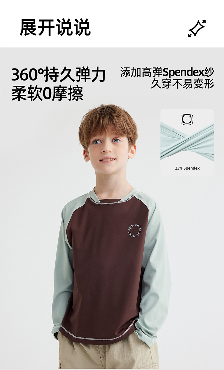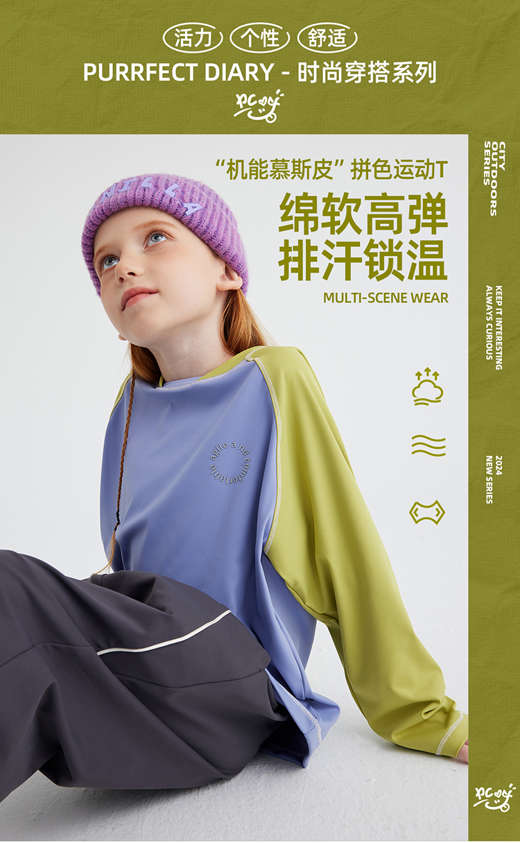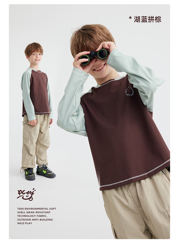 【慕斯0肤感恒温T】儿童拼色运动T恤 PQTX2403