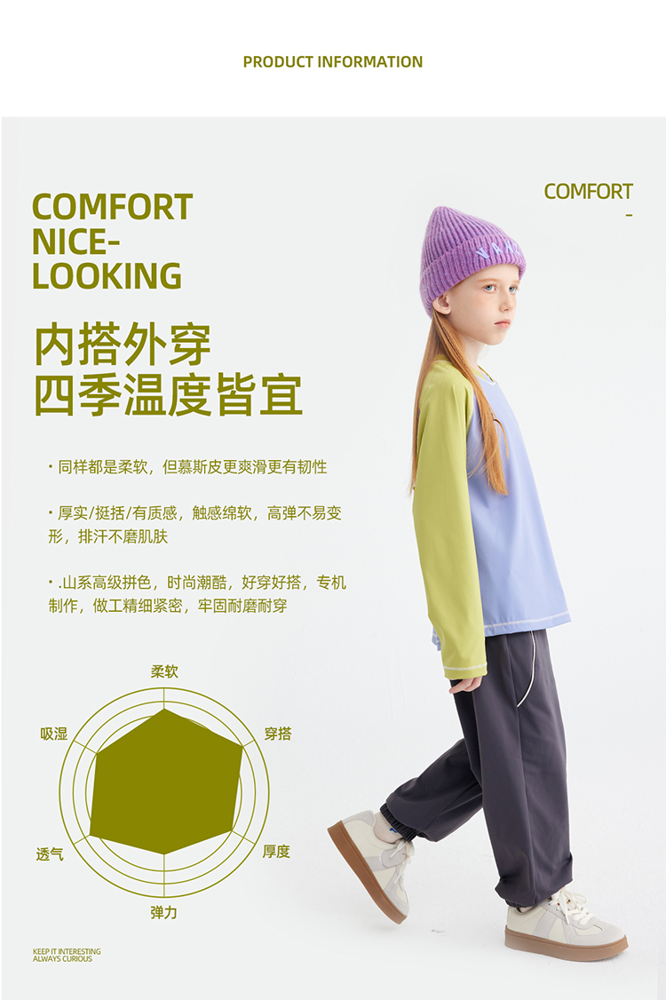 fx-咕噜日记童装儿童T恤2025秋冬男女童休闲保暖上衣圆领高弹打底T恤PDT2517