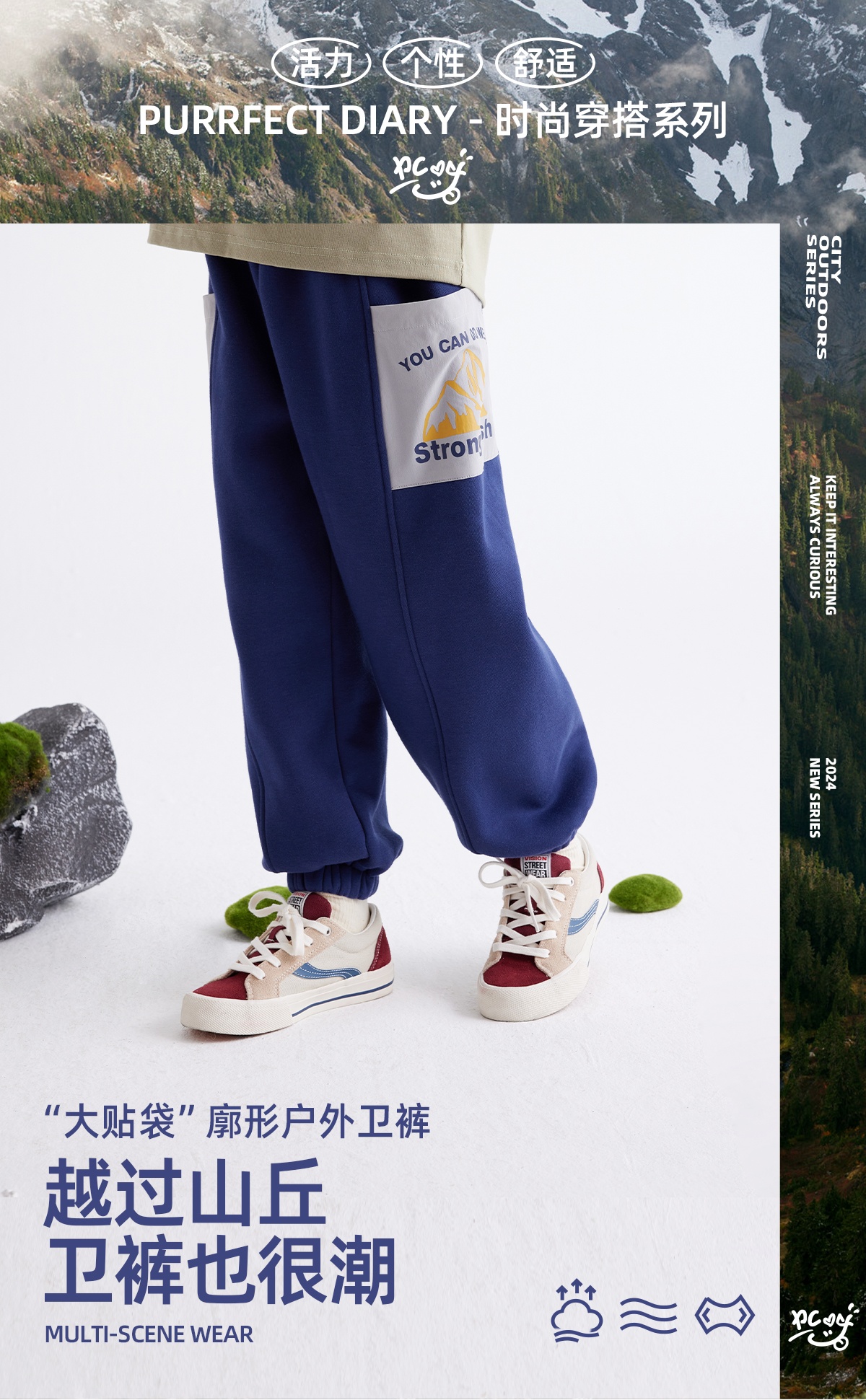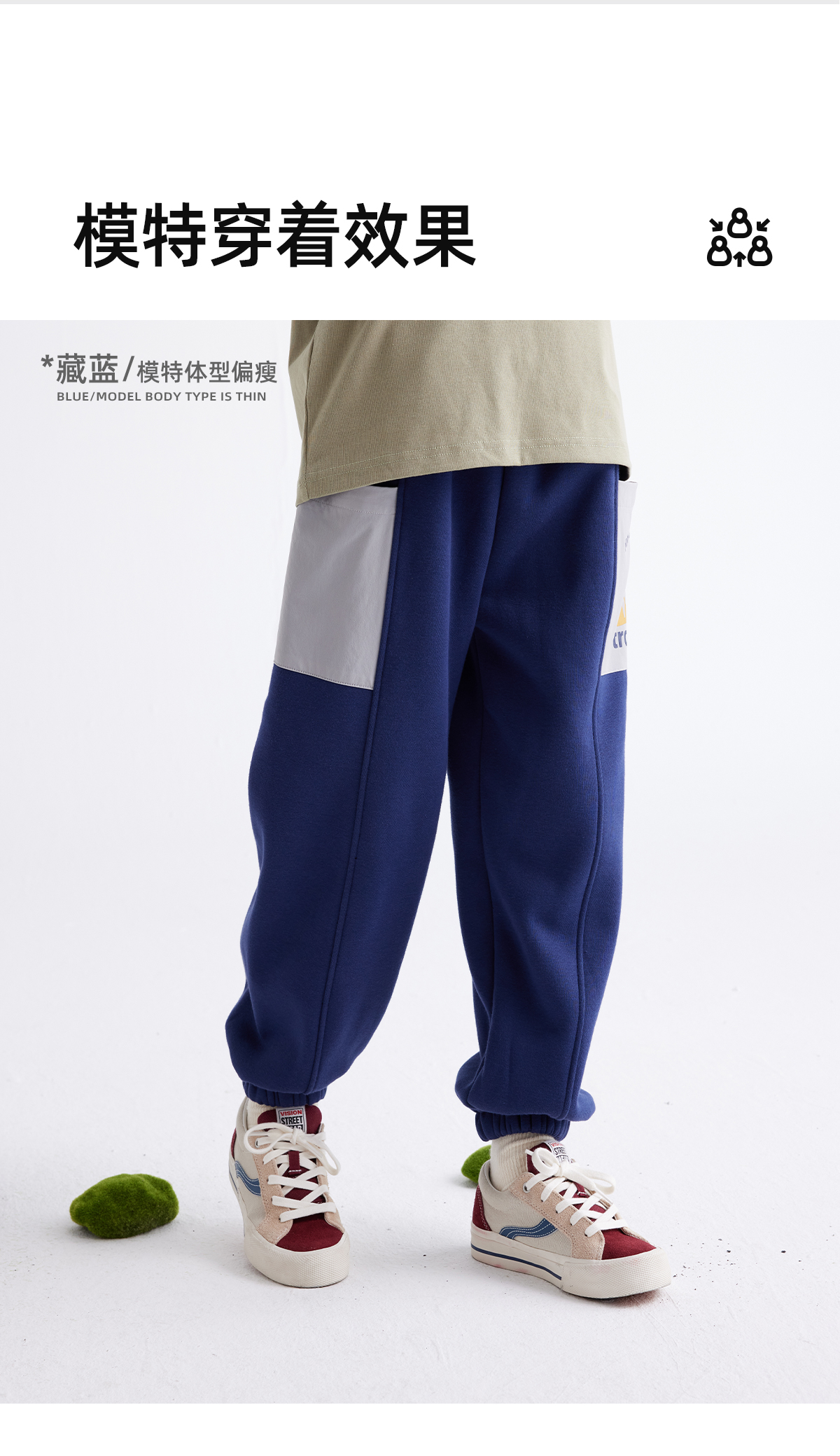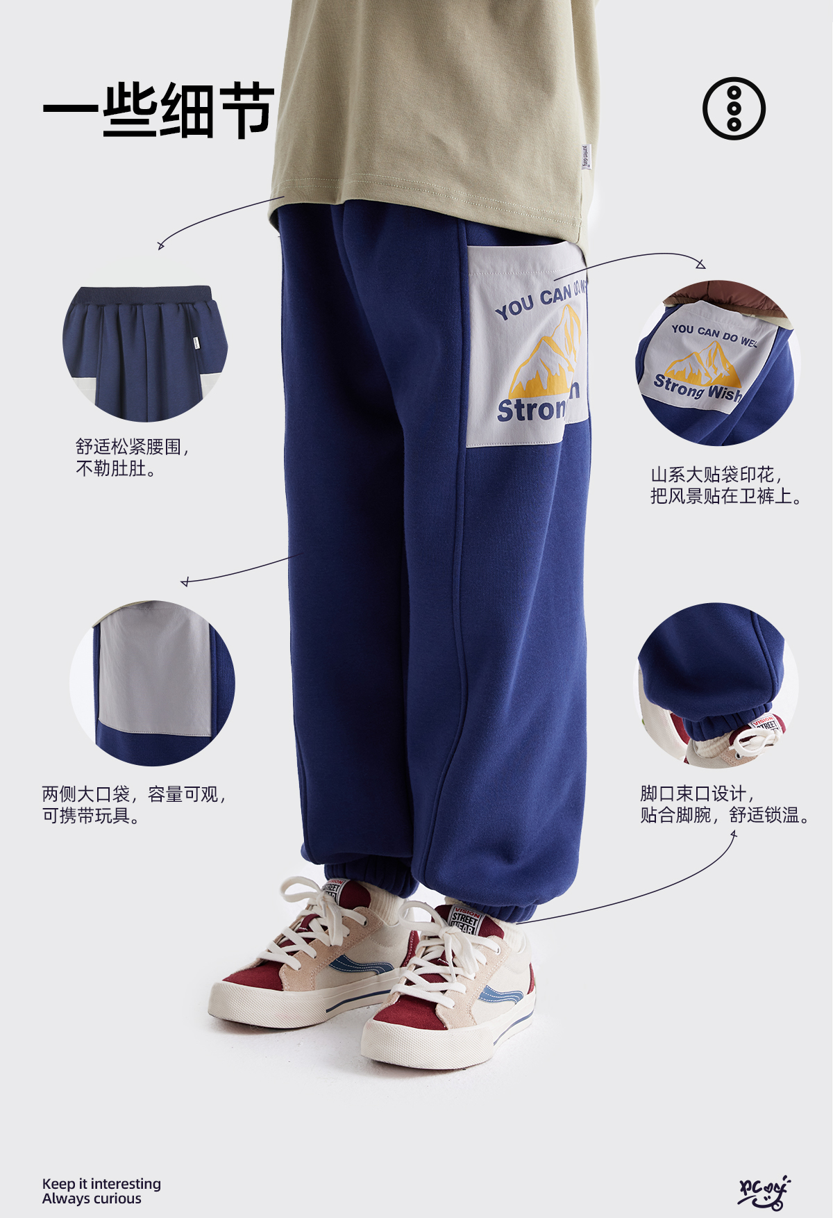 【戚风暖绒裤】儿童大贴袋廓形户外卫裤PDK2417
