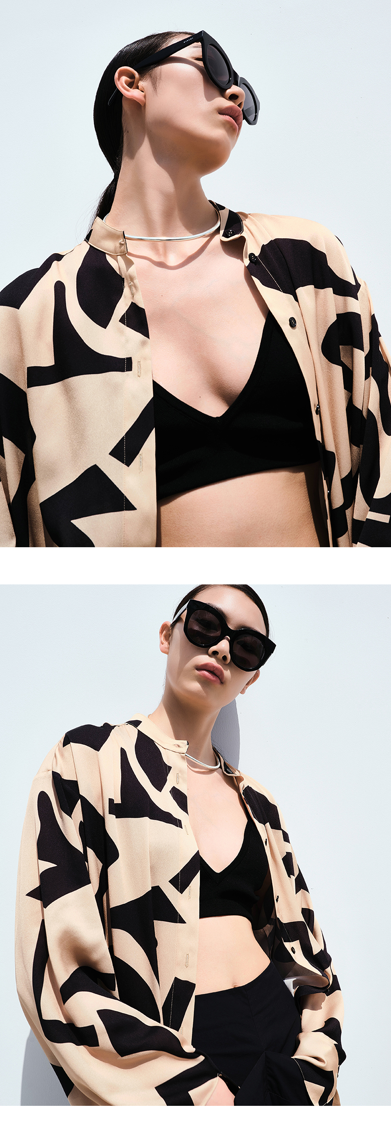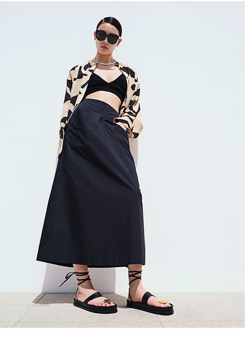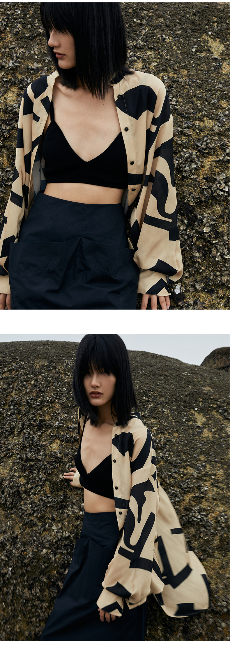 HIDEMI “我们做印花”无尽夏 印花长绒棉套装 可拆卸系带短袖衬衫/不对称半身裙
