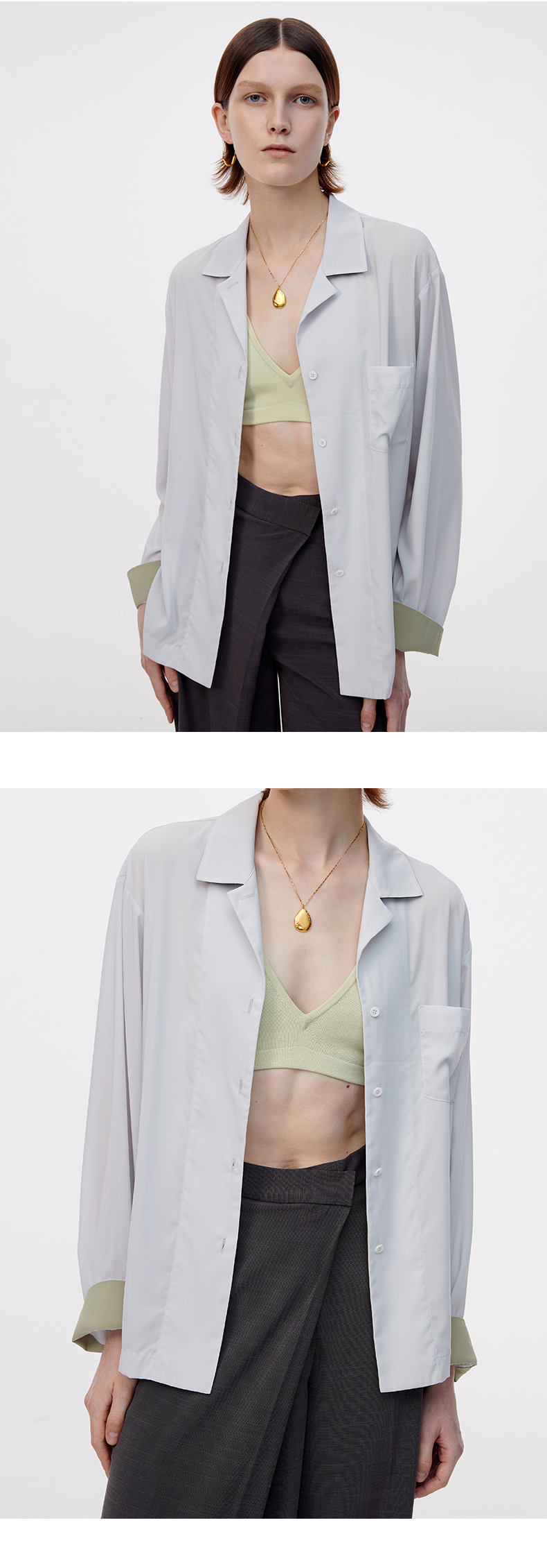 HIDEMI花苞几何设计感衬衫 白色/藏蓝色