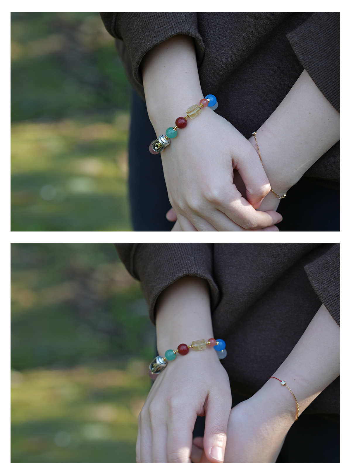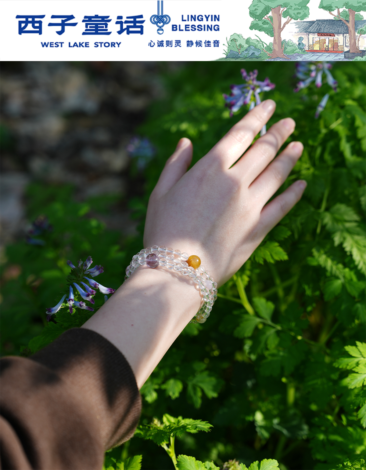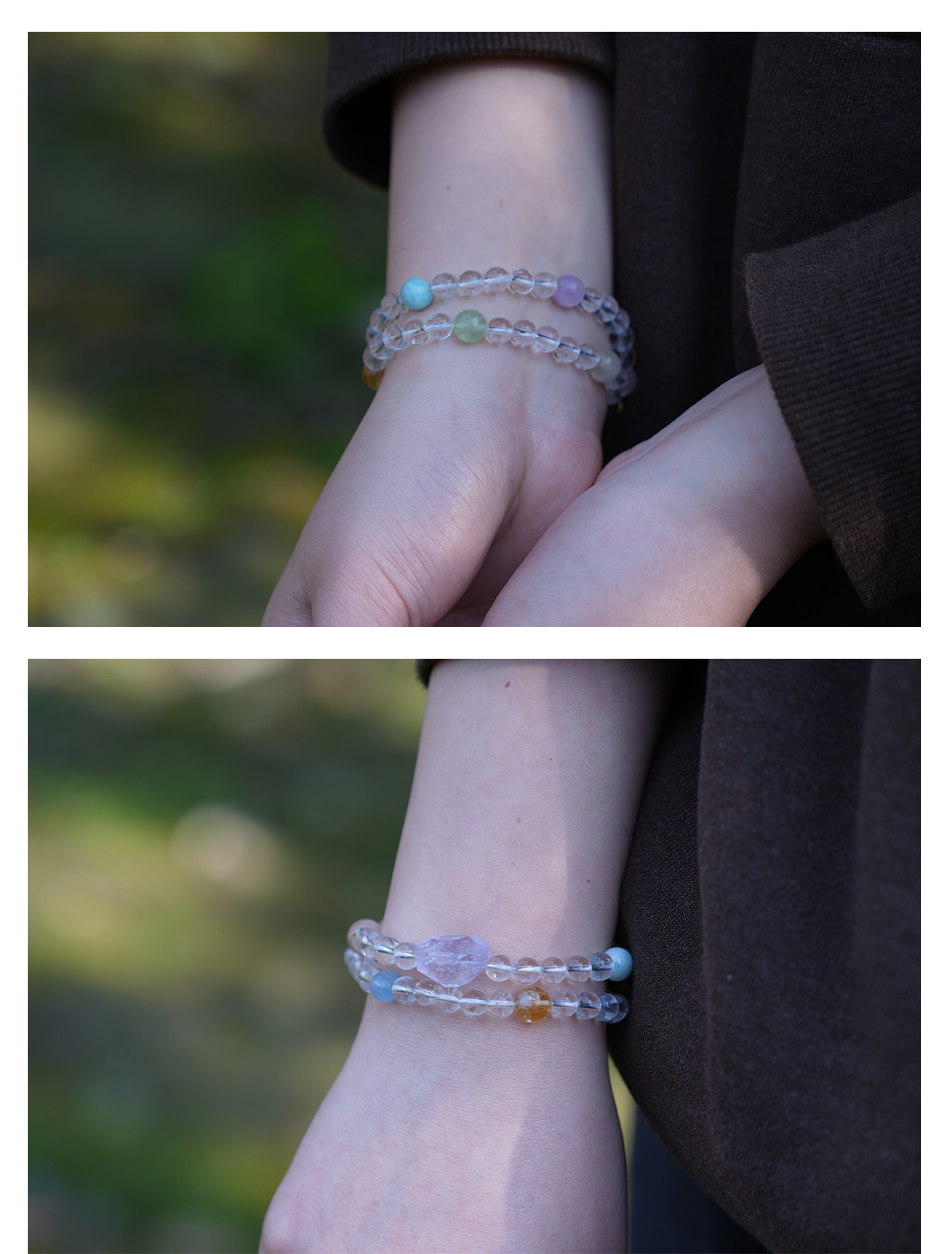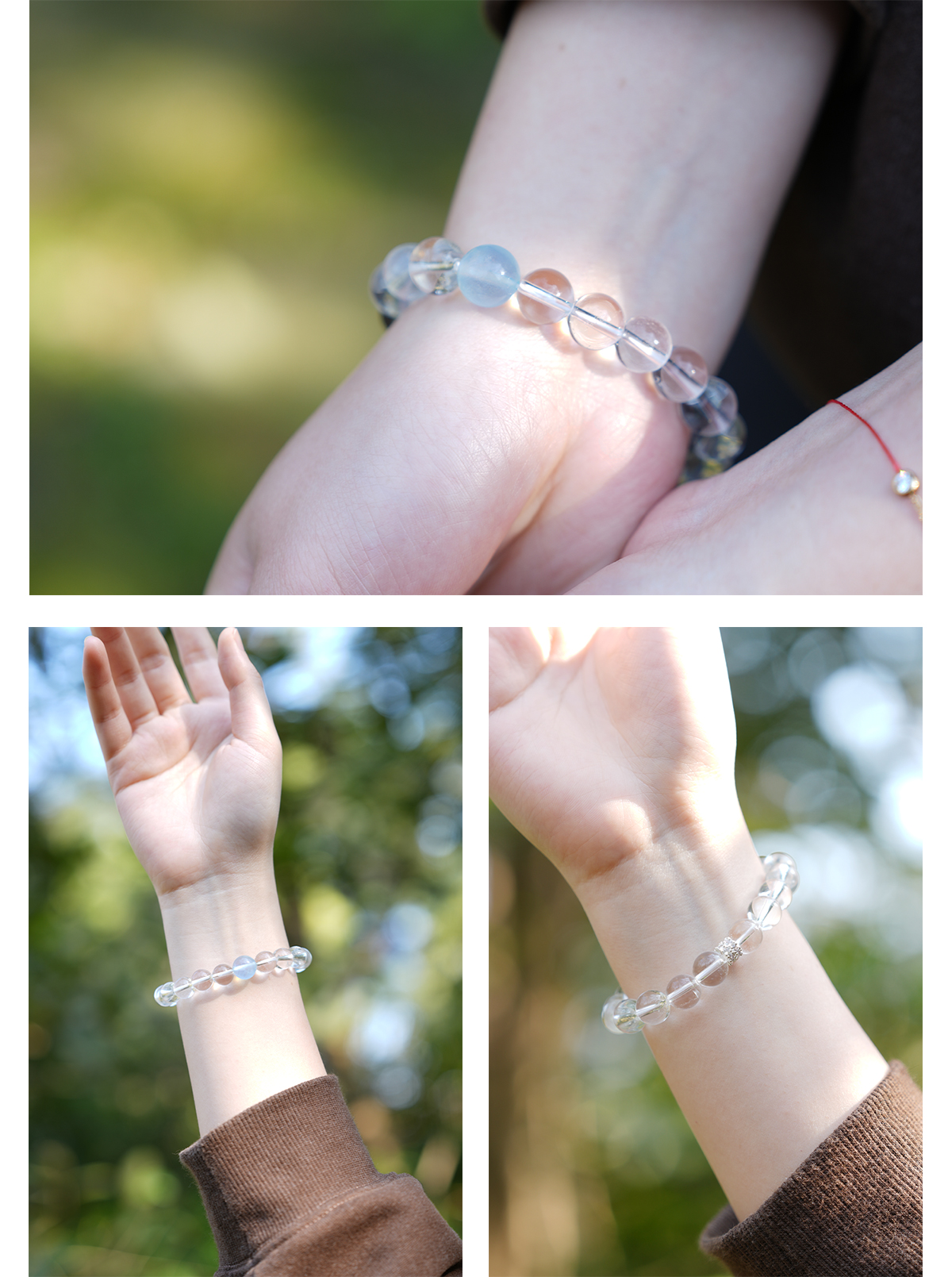 【灵隐景区直发】明星同款白水晶手串高能量黄水晶女生手链天然海蓝宝粉水晶天然黄阿塞黄虎眼