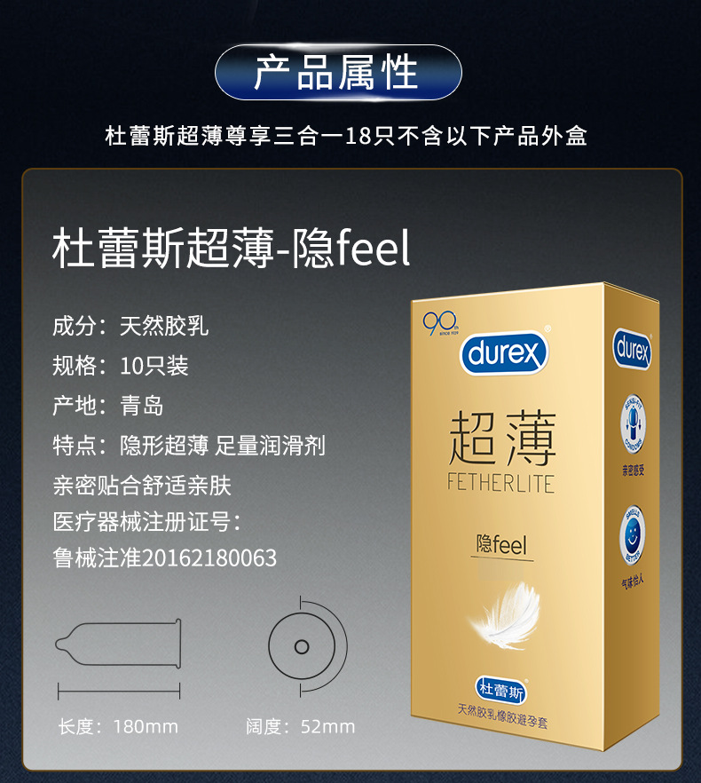 杜蕾斯避孕套超薄尊享三合一18只装安全套成人情趣计生性用品