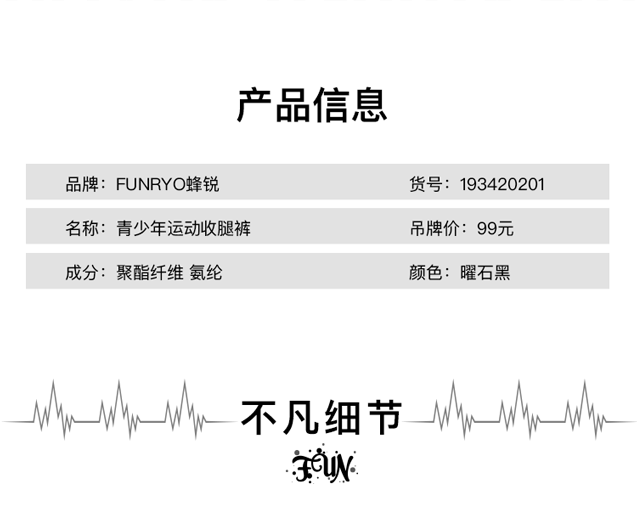 小李子:专柜正品 FUNRYO蜂锐FUN系列青少年运动休闲收腿裤长裤