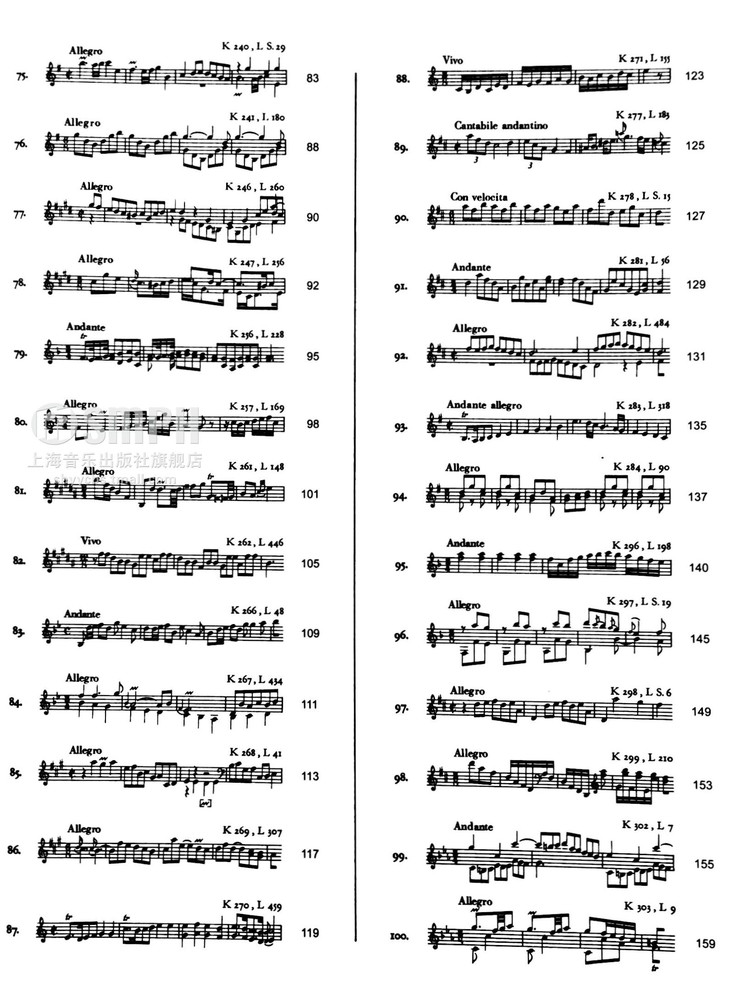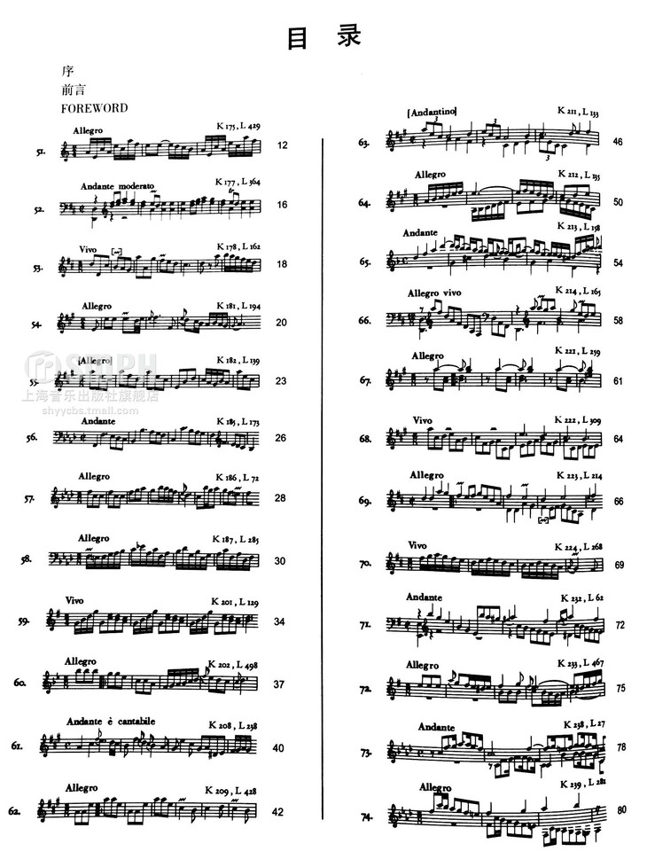 本套乐谱收集了斯卡拉蒂最经典的钢琴奏鸣曲,展示了斯卡拉蒂在不同时期的创作特征和几种重要类型的奏鸣曲。同时,通过选编的斯卡拉蒂从1738年创作的“练习”(Essercizi)直至其生命晚期的作品,使大家了解斯卡拉蒂的音乐创作的发展过程,从而更全面的认识他的奏鸣曲。
