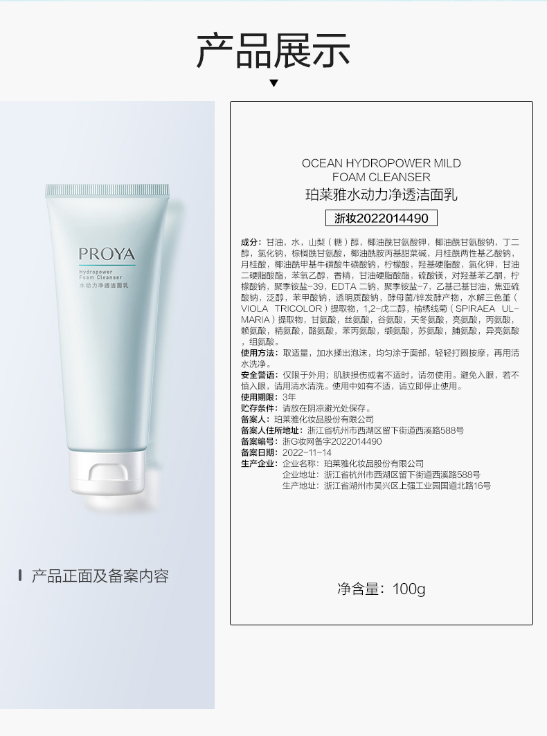 珀莱雅(PROYA)水动力洁面100g+水135ml+乳100ml 套盒