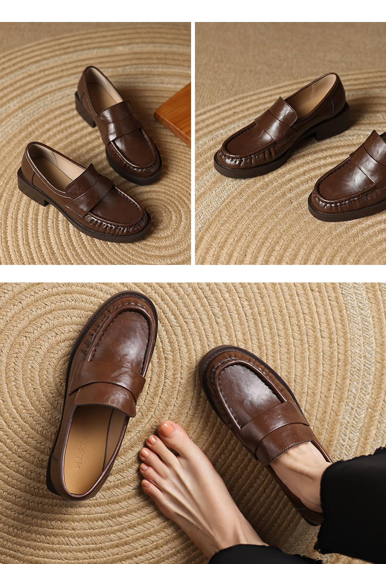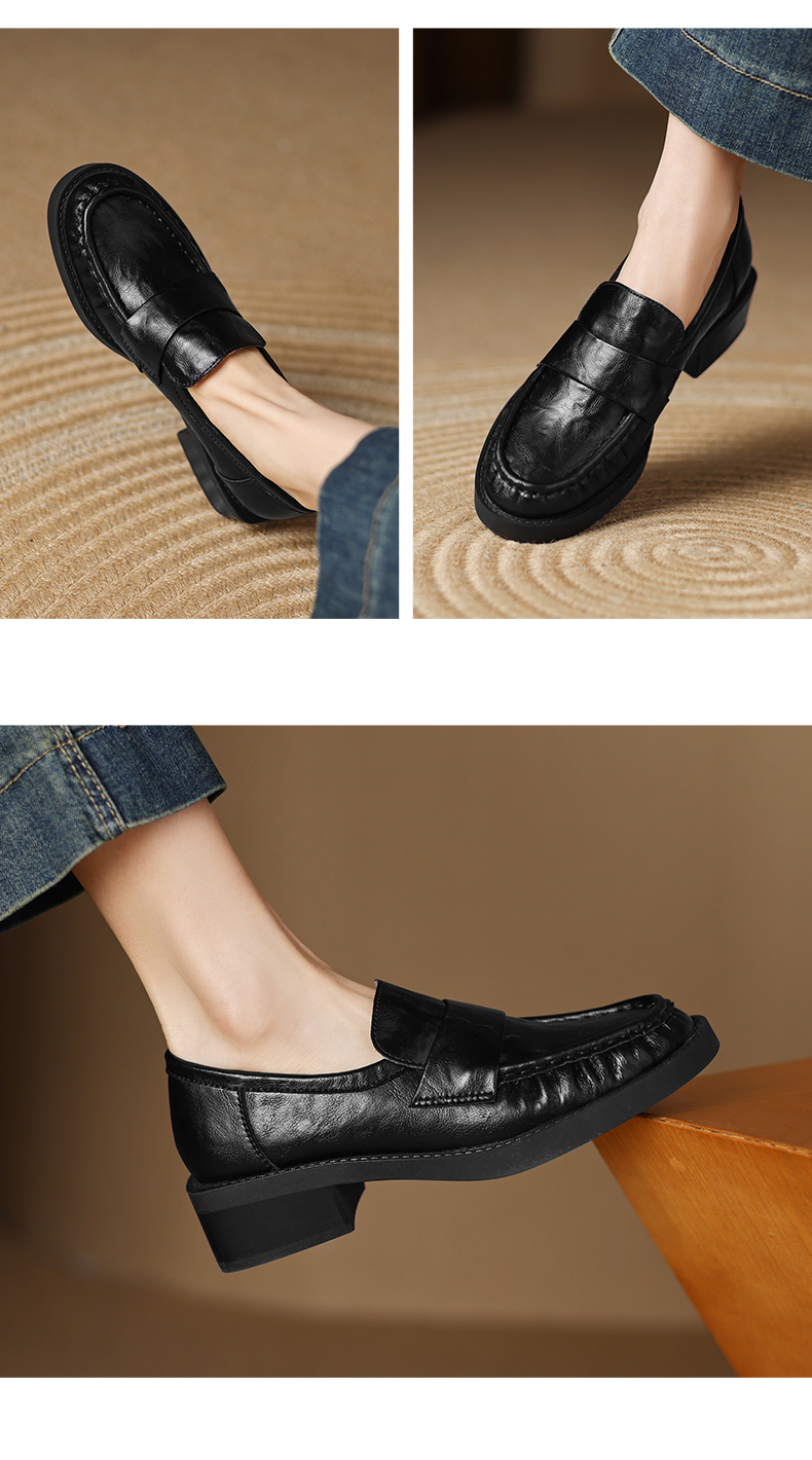 阿么手工女鞋2025新款复古真皮一脚蹬乐福鞋百搭英伦风单鞋女4CM