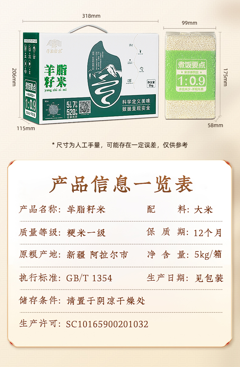 【有机认证】羊脂籽米 家庭装5kg
