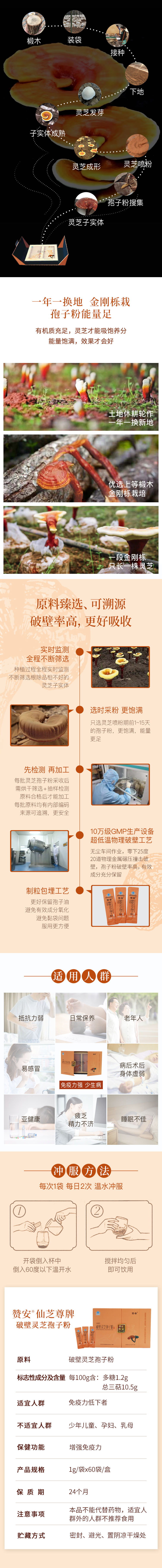正安 孢子粉 赞安原材 破壁灵芝孢子粉1g/包*60包/盒