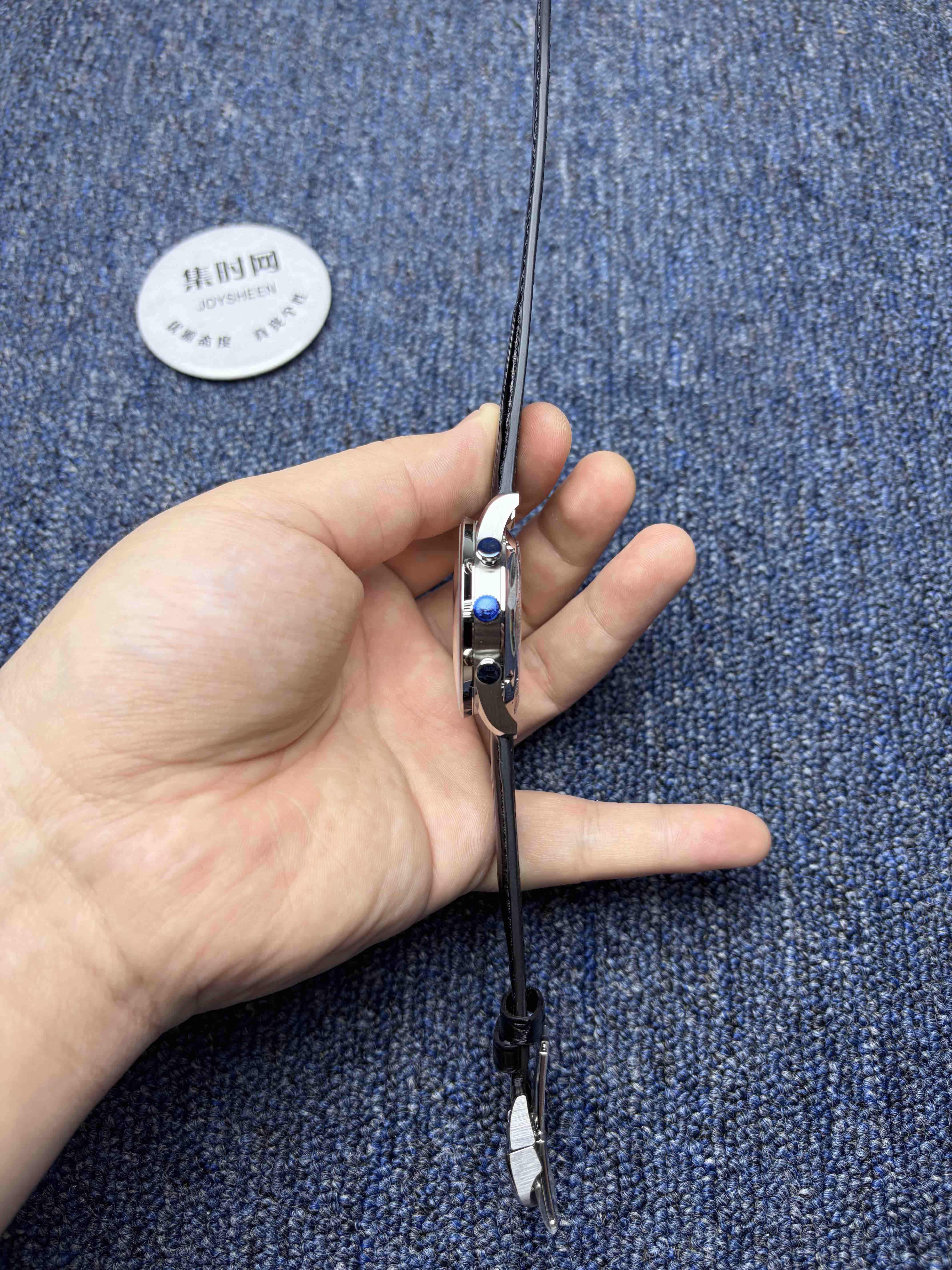 1️⃣表壳:原版开模,表壳设计与原版一致,葡萄牙计时的表壳设计极致简约经典,以精密的圆形为主。壳身线条圆润流畅,侧面通常采用拉丝与抛光交替处理,质感出众。标志性的窄抛光表圈,最大程度地保留了表盘的展示空间。表耳纤细弯曲,确保佩戴时与手腕贴合。整体厚度适中13毫米,在优雅与存在感之间取得平衡。