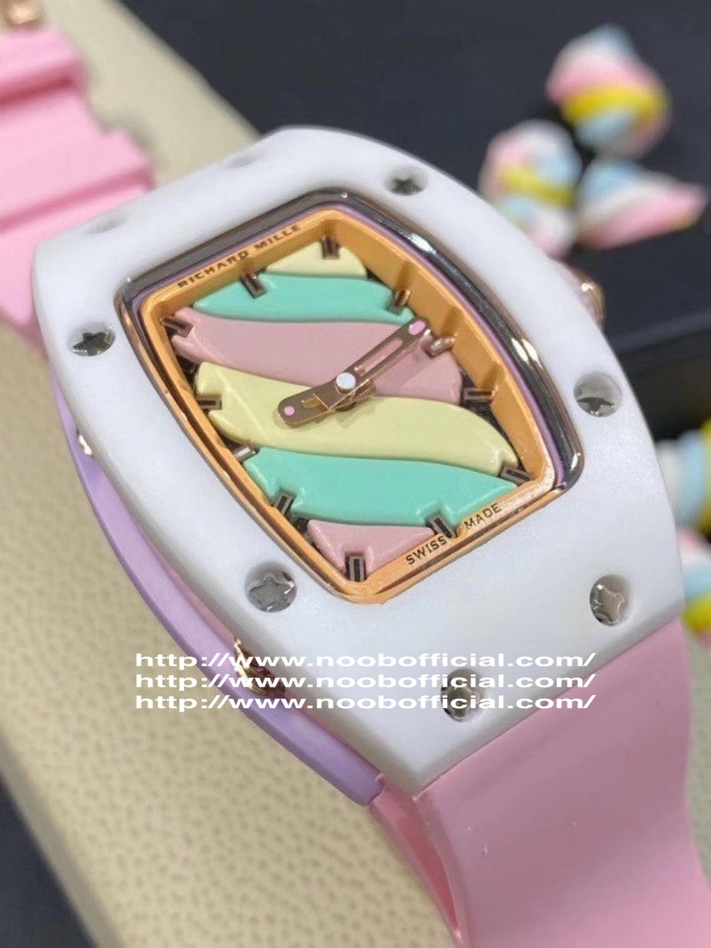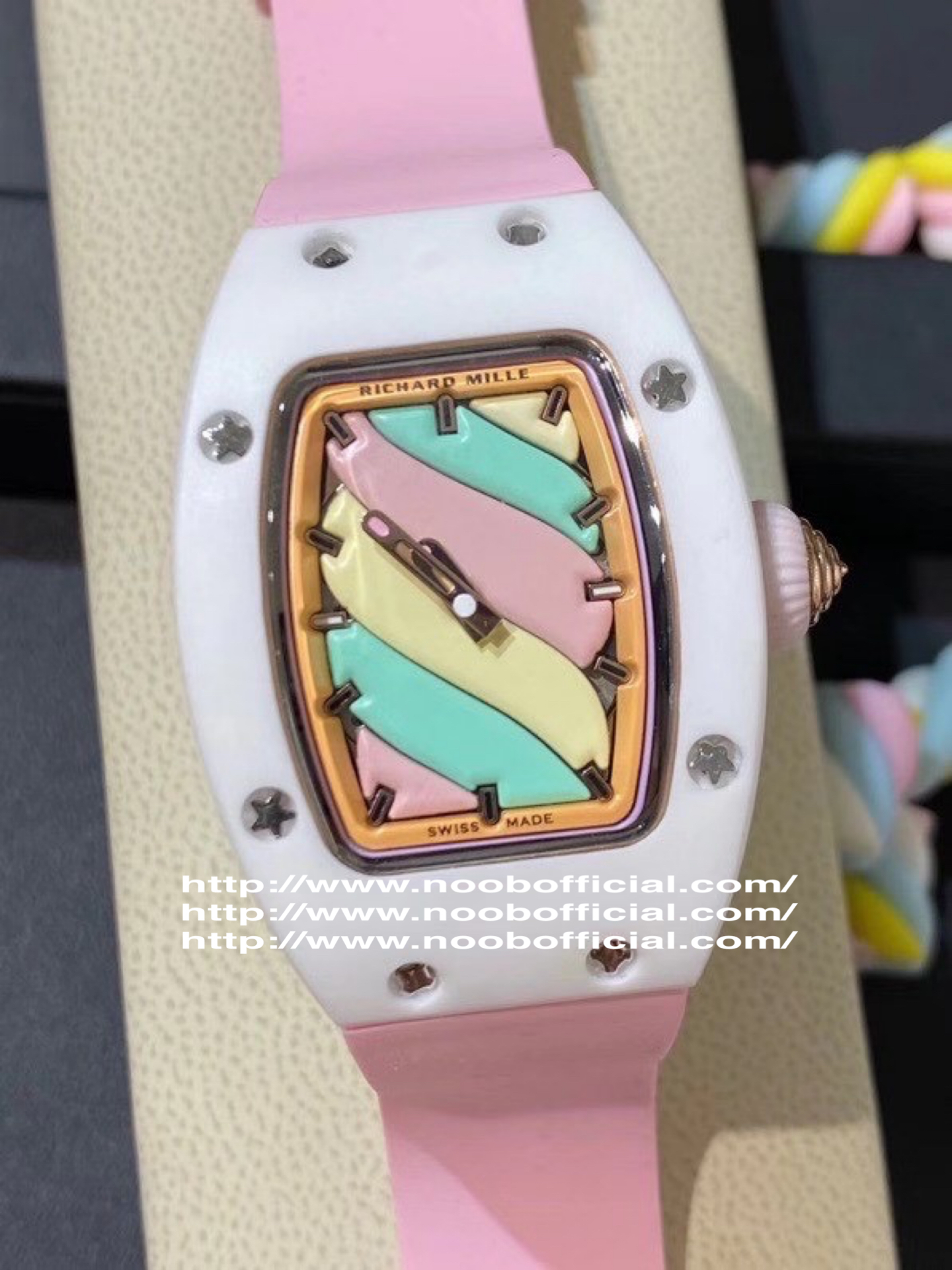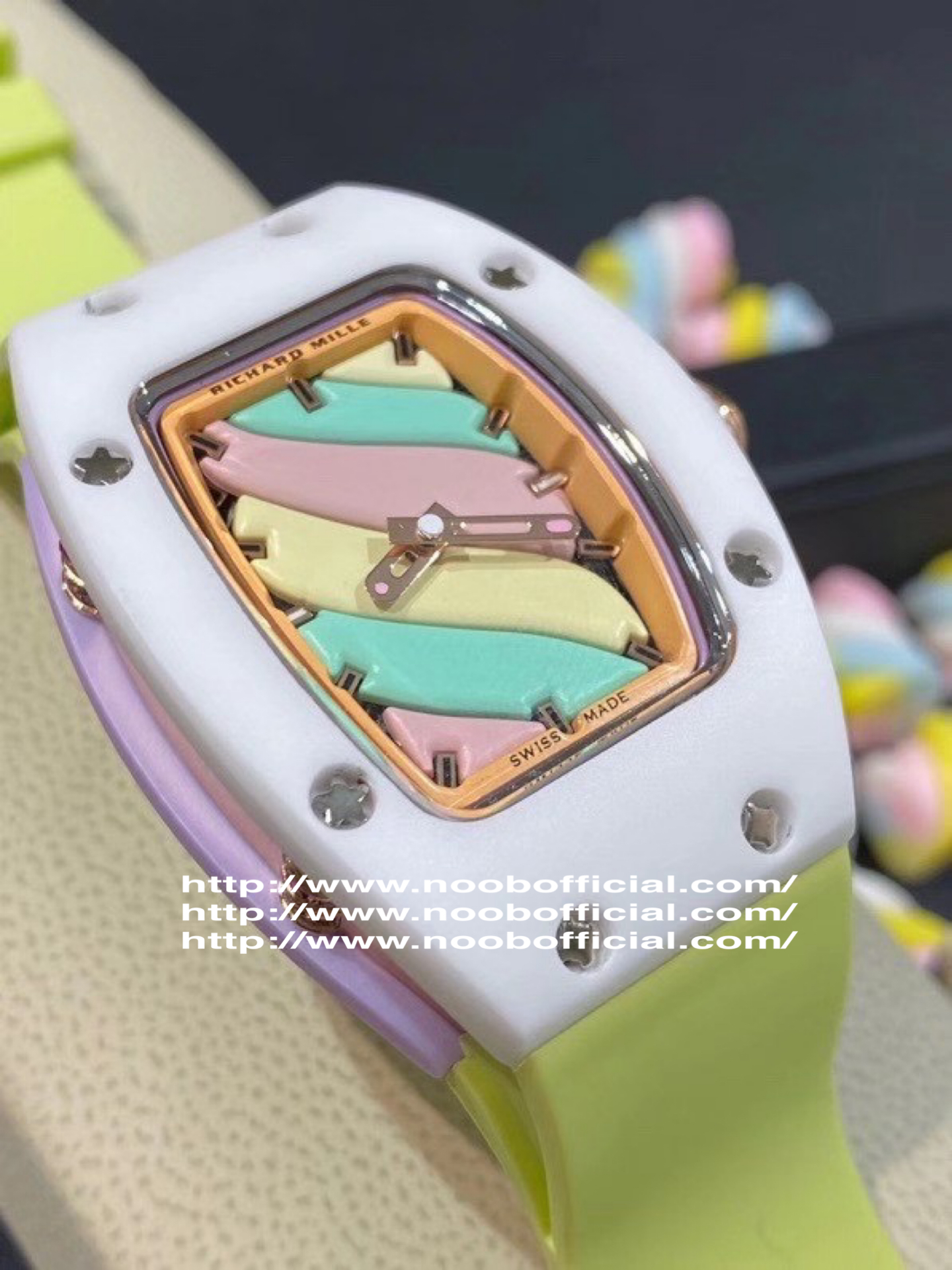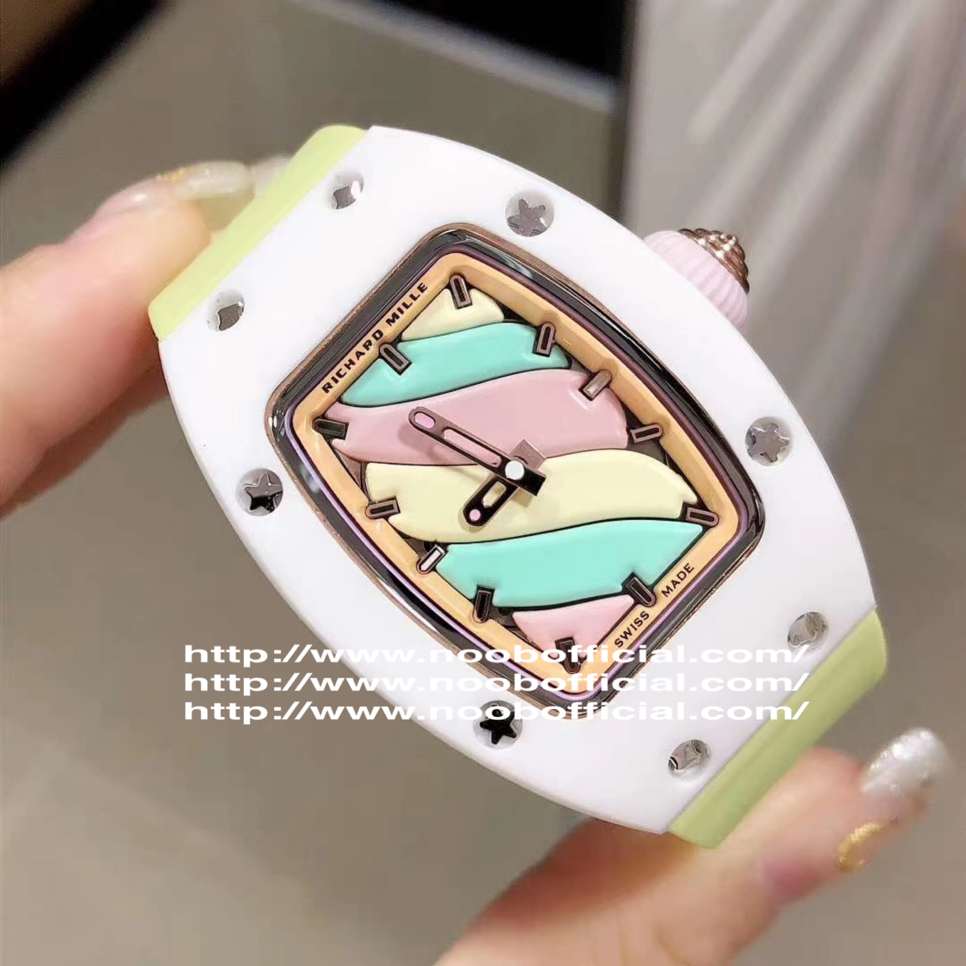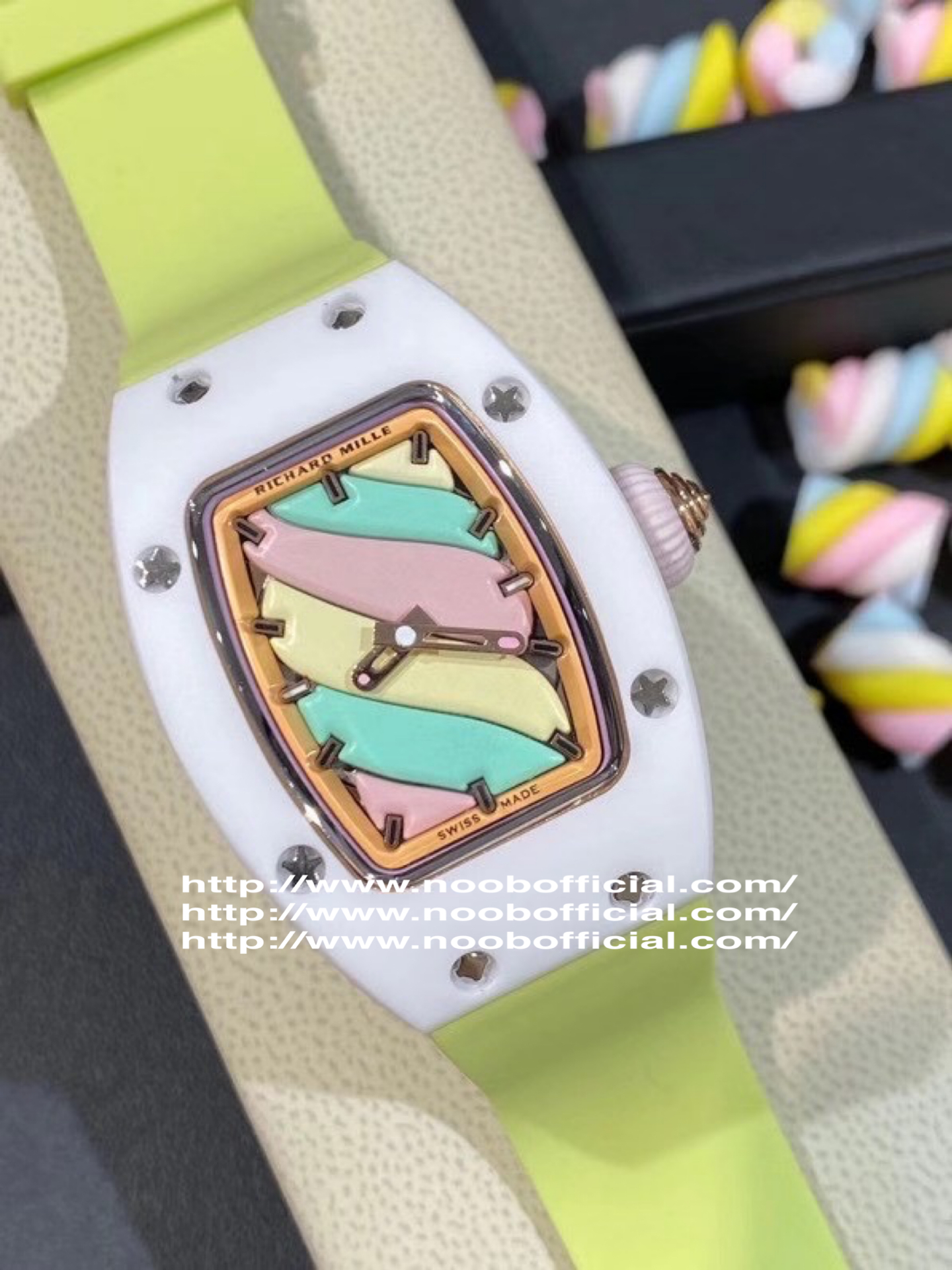 🌟实拍 理查德米勒 RichardMille 糖果棉花糖 新爆款 bon bon系列最稀有的作品!克服传统工艺打破模式!钟表受尊敬的技术之一。不是所有人的嫁妆,棉花糖运动曲线和颜色,它们是诱人的。有了理查德米勒,实现了把棉花糖戴在你的手腕上!白色陶瓷加上黄粉绿搪瓷表盘,RM-07柔和的颜色创造了一个组合...甜蜜!糖果店的一次旅行,一个让人难以置信的艺术品。你会戴上它吗?
