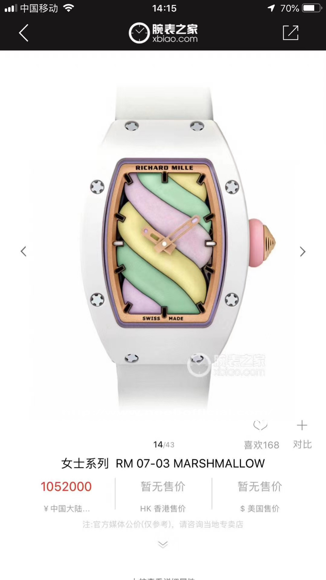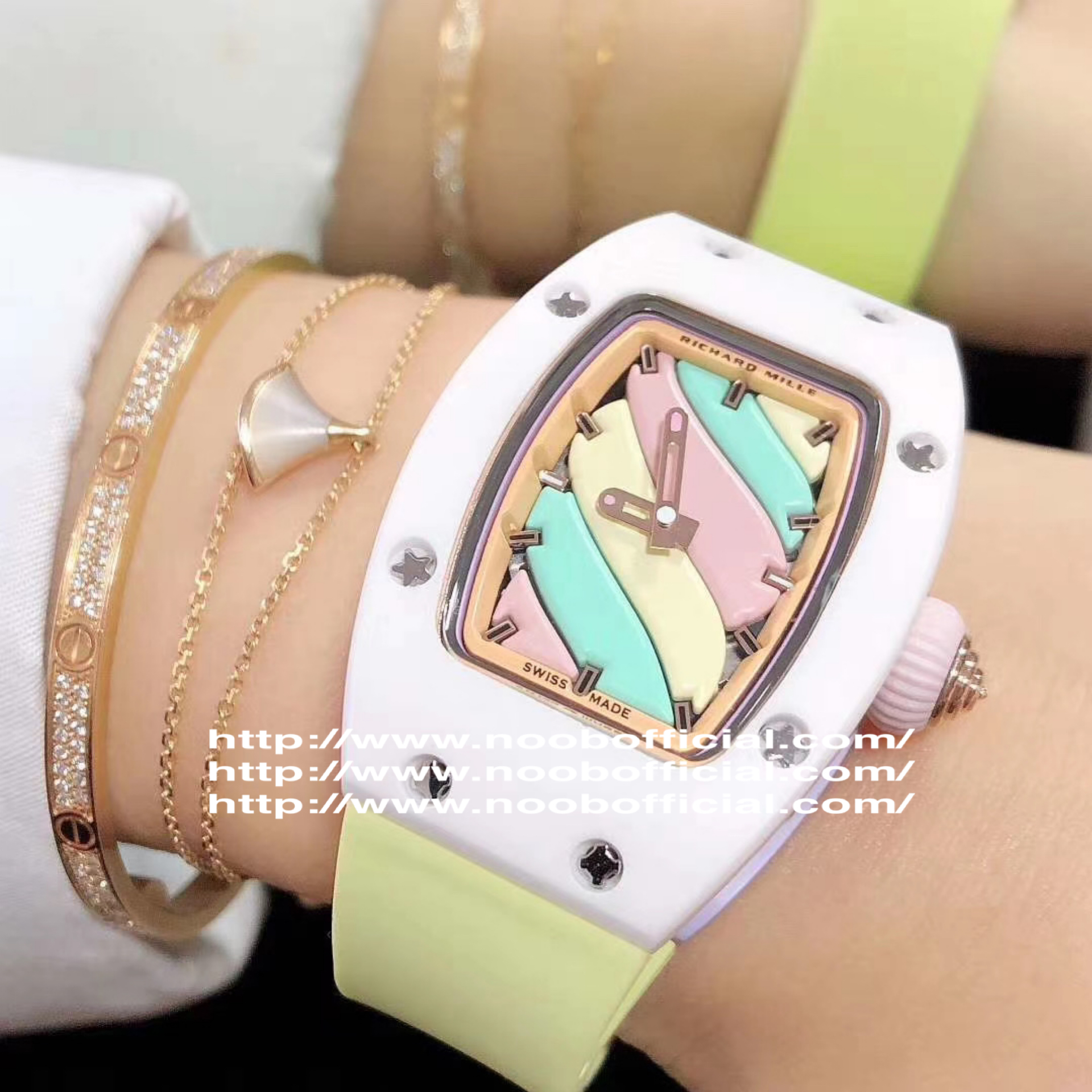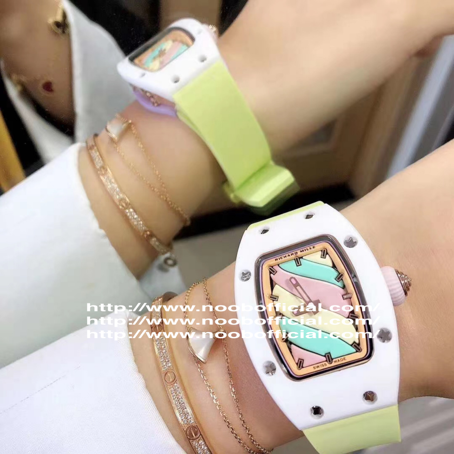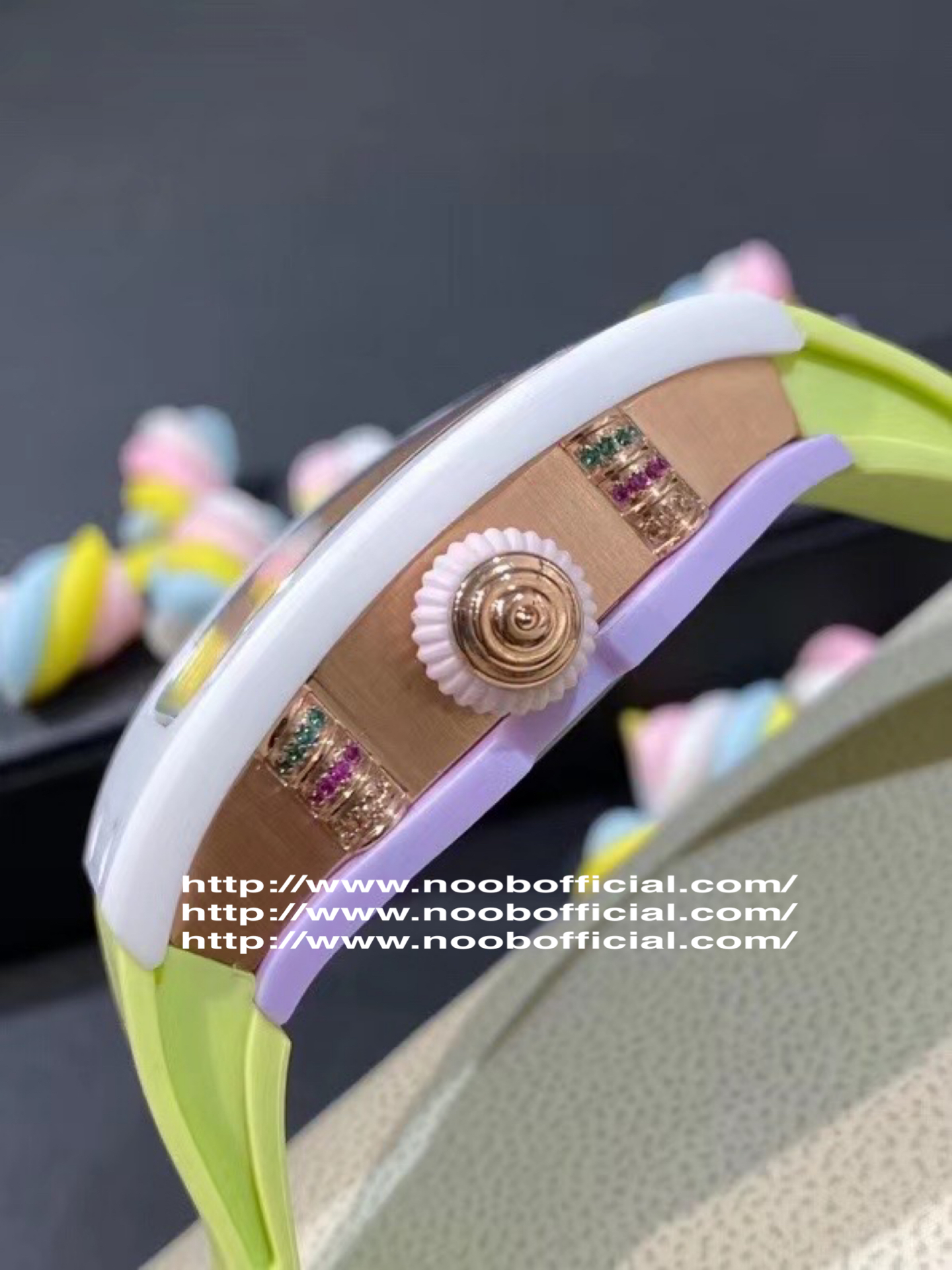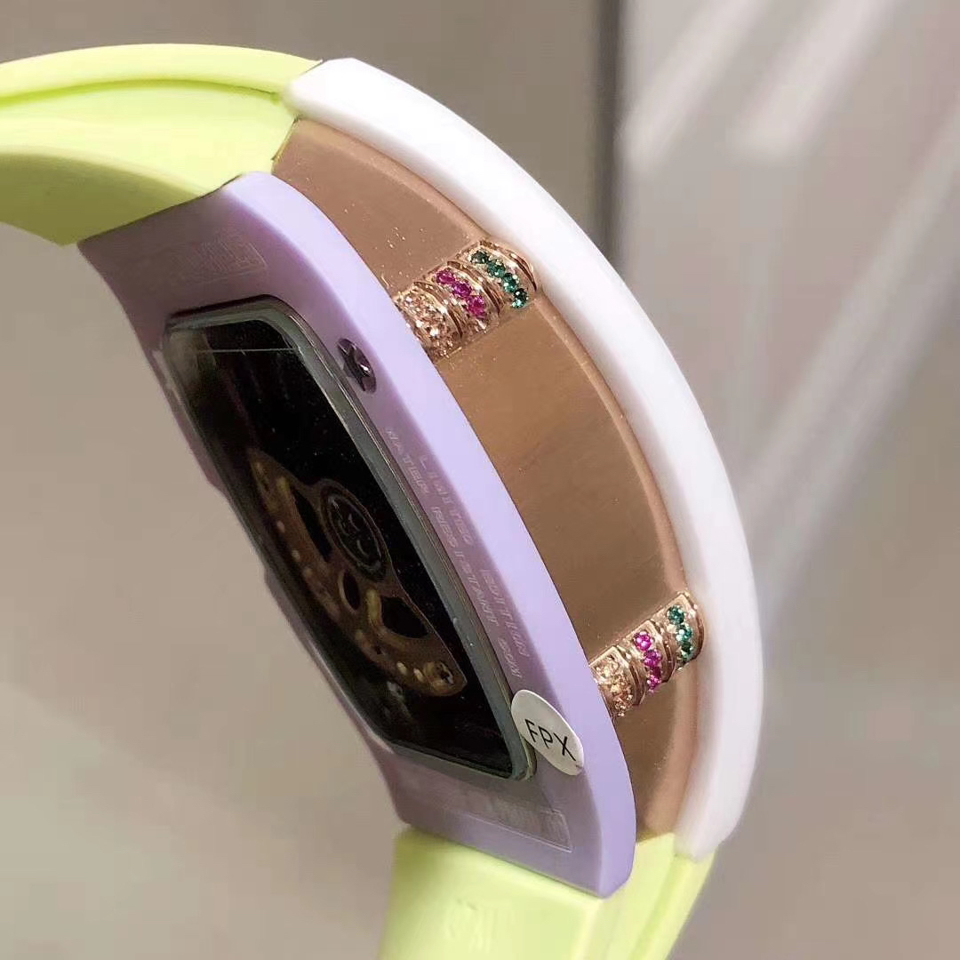 🌟实拍 理查德米勒 RichardMille 糖果棉花糖 新爆款 bon bon系列最稀有的作品!克服传统工艺打破模式!钟表受尊敬的技术之一。不是所有人的嫁妆,棉花糖运动曲线和颜色,它们是诱人的。有了理查德米勒,实现了把棉花糖戴在你的手腕上!白色陶瓷加上黄粉绿搪瓷表盘,RM-07柔和的颜色创造了一个组合...甜蜜!糖果店的一次旅行,一个让人难以置信的艺术品。你会戴上它吗?