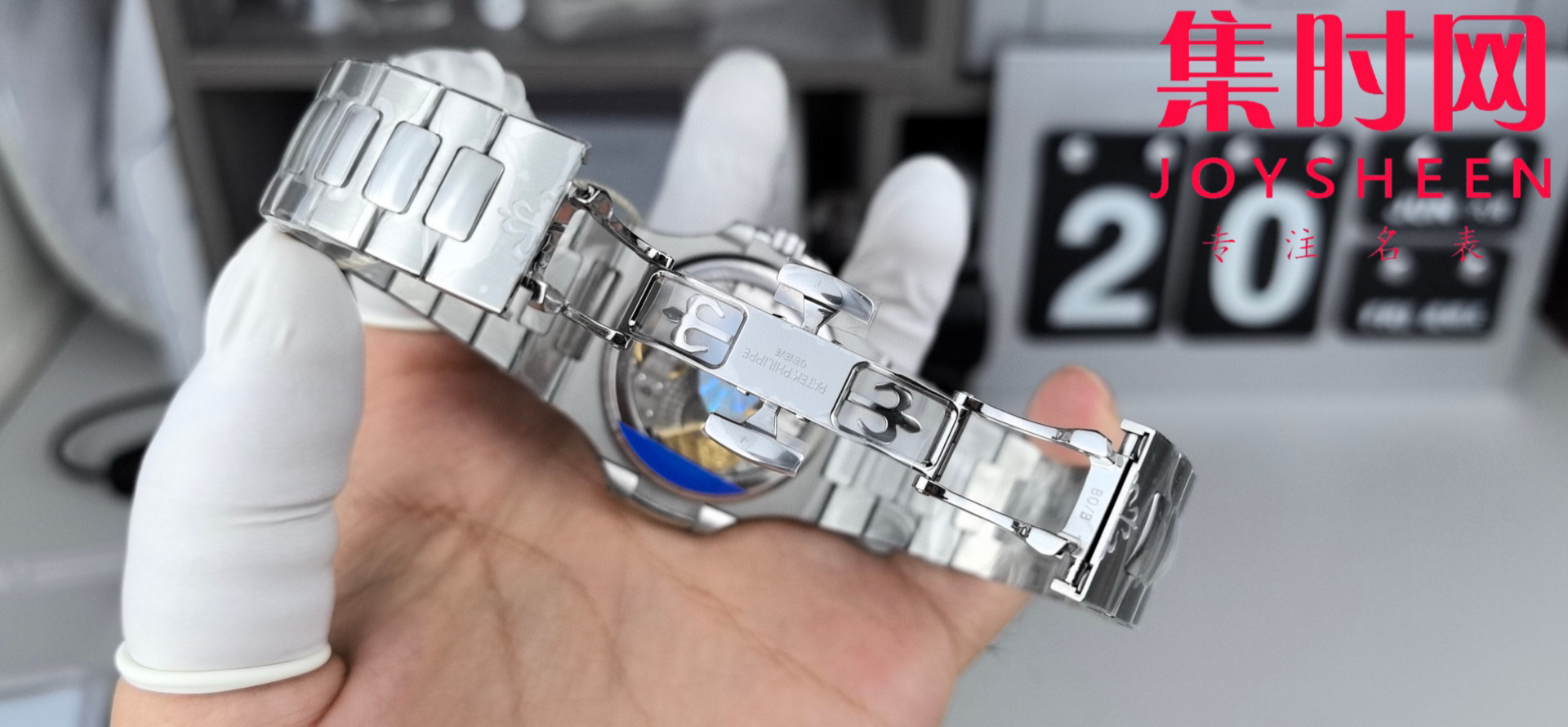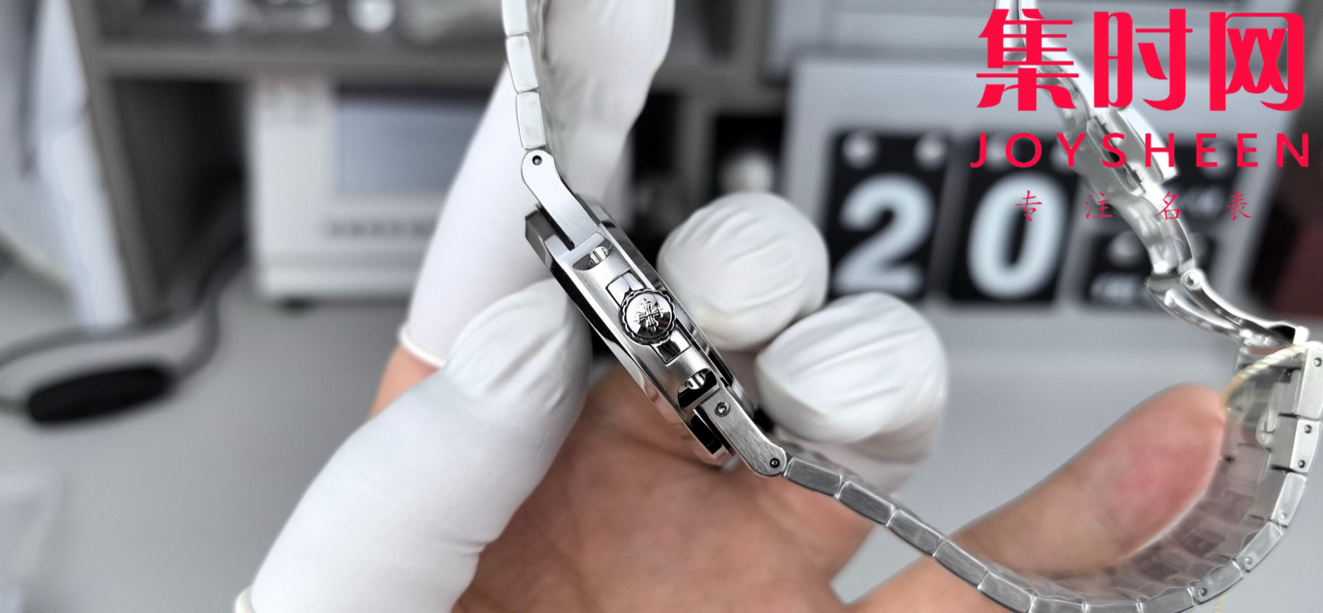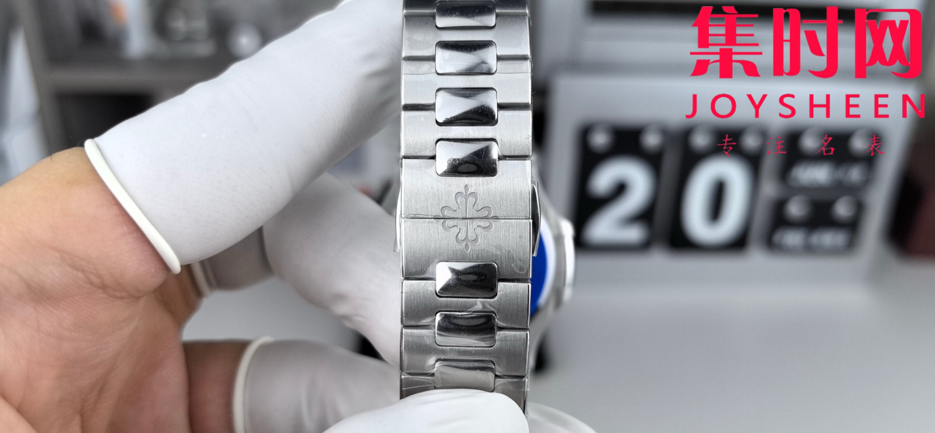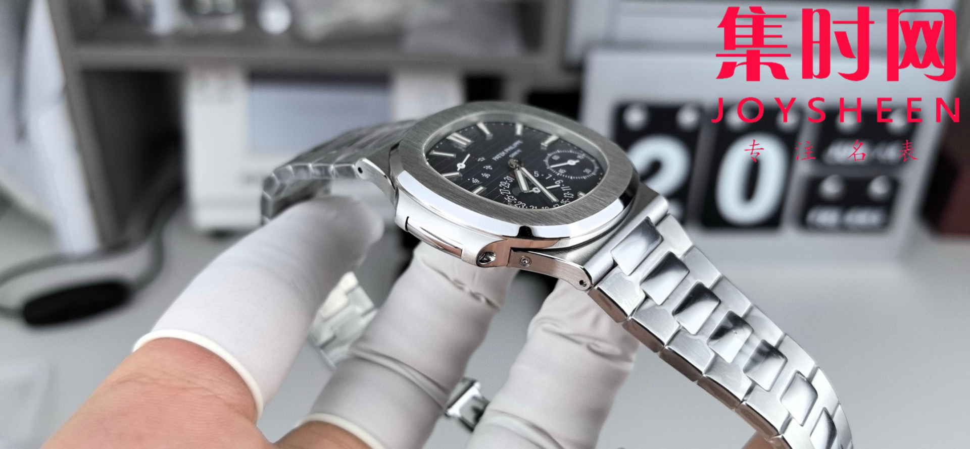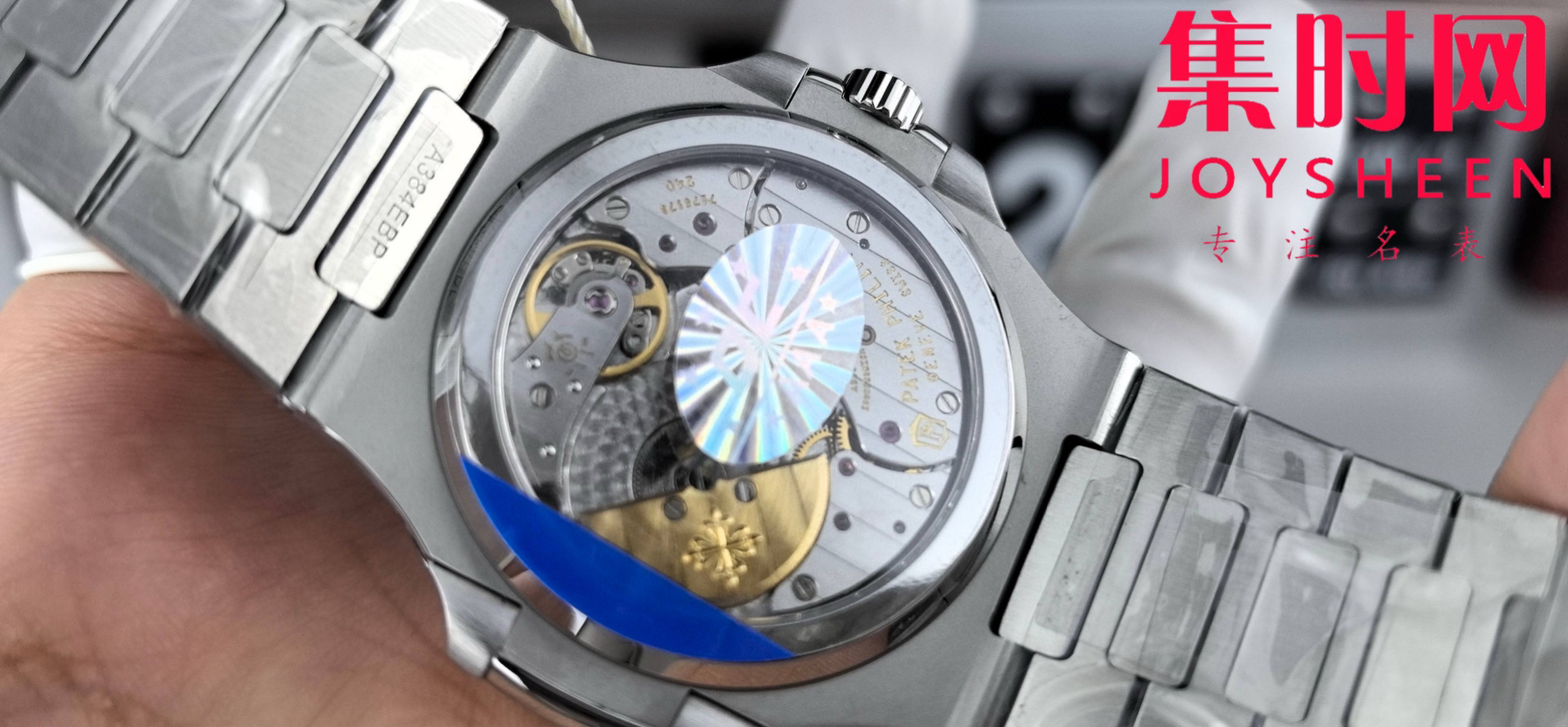PPF潜心三年 真“芯”之作!百达翡丽PP5712GR全新升级V3版,巅峰出道了!这是真正具有里程碑意义的超级一体机芯Cal.240 PS IRM C LU。全机芯零件数265个,平面游丝,21600每小时振荡次数 Gyromax带调节砝码的摆轮,稳定无误差。(不同于市面上现有的假机芯盖甲板,假珍珠陀) 全新修正的不锈钢表带,铰链部分根据真正的百达翡丽鹦鹉螺不锈钢表带拆解开发,和正品一致的贴合效果,逆袭市面上所有副本,铰链开合角度和正品一致,锁毕声音和正品相同。而PPF独家的“蓝魅”面无限接近接近原版,更是傲视群雄!