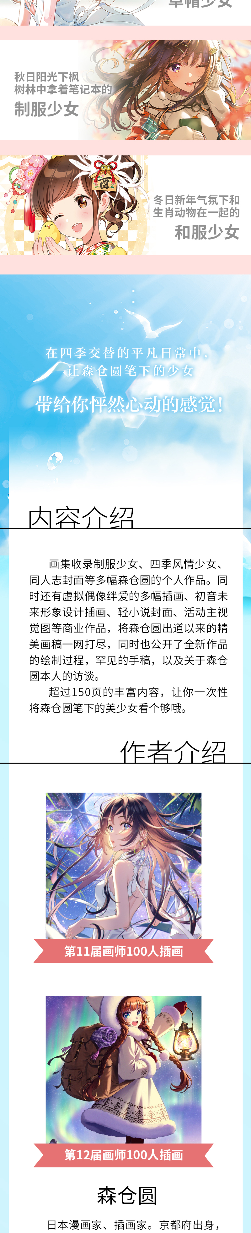 PIXIV知名插画家森仓圆首本画集,《四季恋歌:森仓圆作品集》“绊爱”的设计者