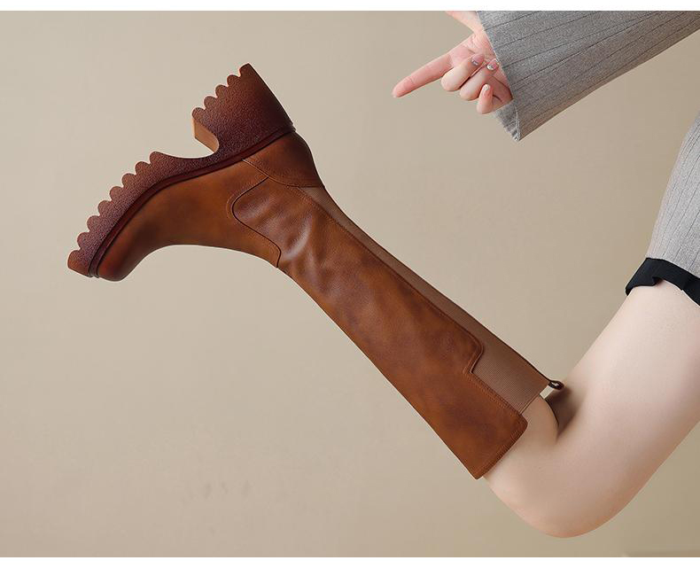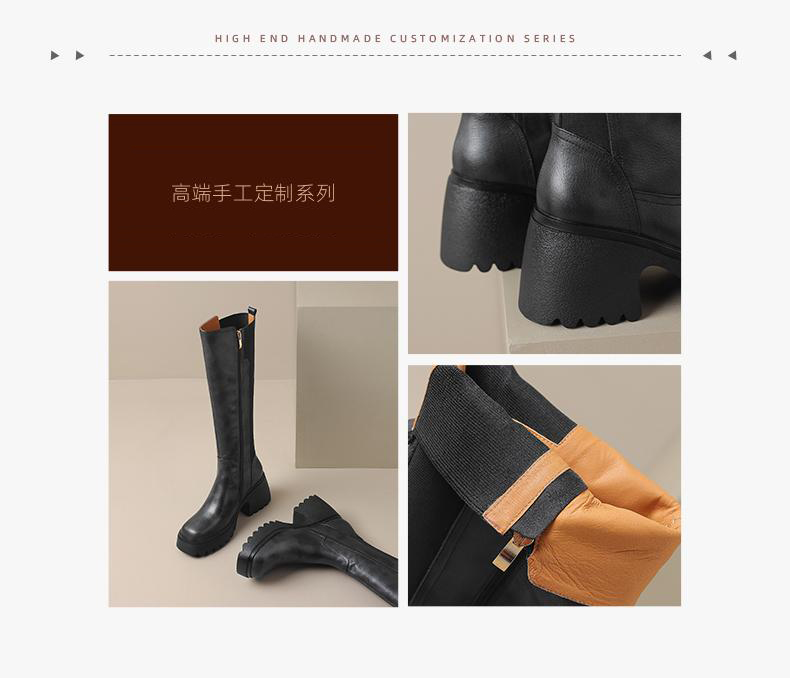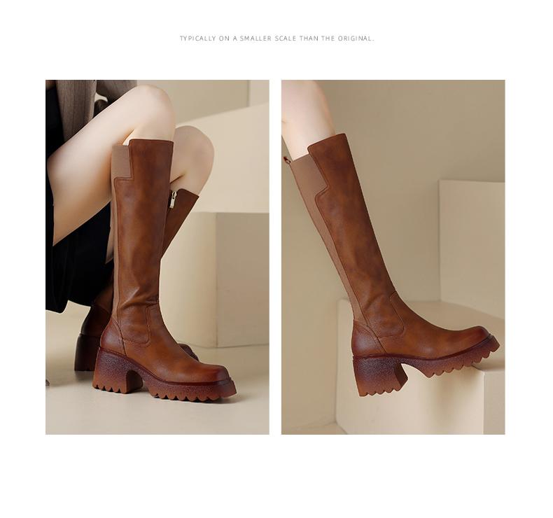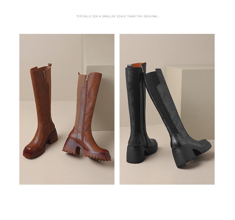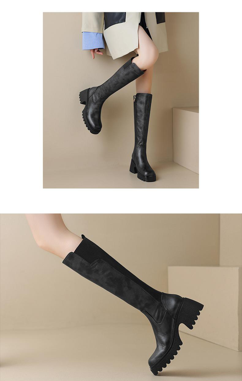英伦风时尚长靴女厚底7CM冬季复古小个子骑士靴显瘦 商品图4