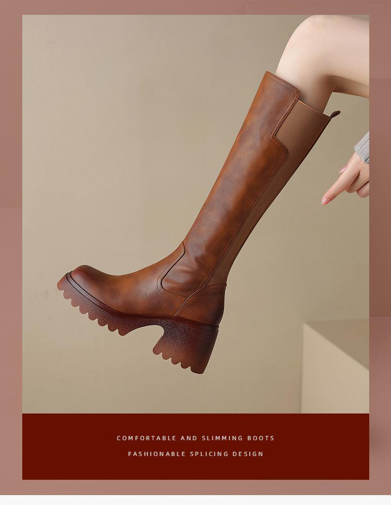 英伦风时尚长靴女厚底7CM冬季复古小个子骑士靴显瘦 商品图1