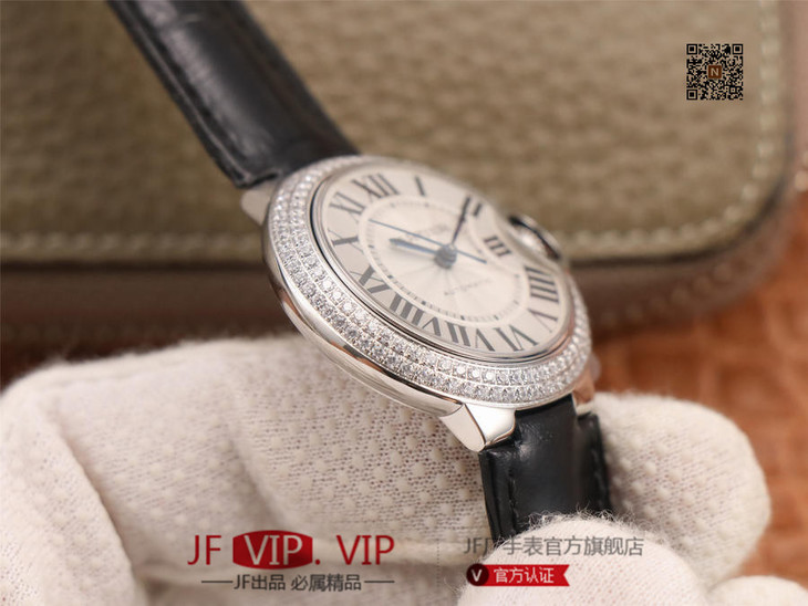 V6卡地亚 蓝气球系列,表径 33mm,搭载进口日本机械,全精钢材质,质感同正品,防刮花蓝宝石水晶镜面,指针为烤蓝钢针。V6厂!女士腕表,皮表带,自动机械机芯,密底。