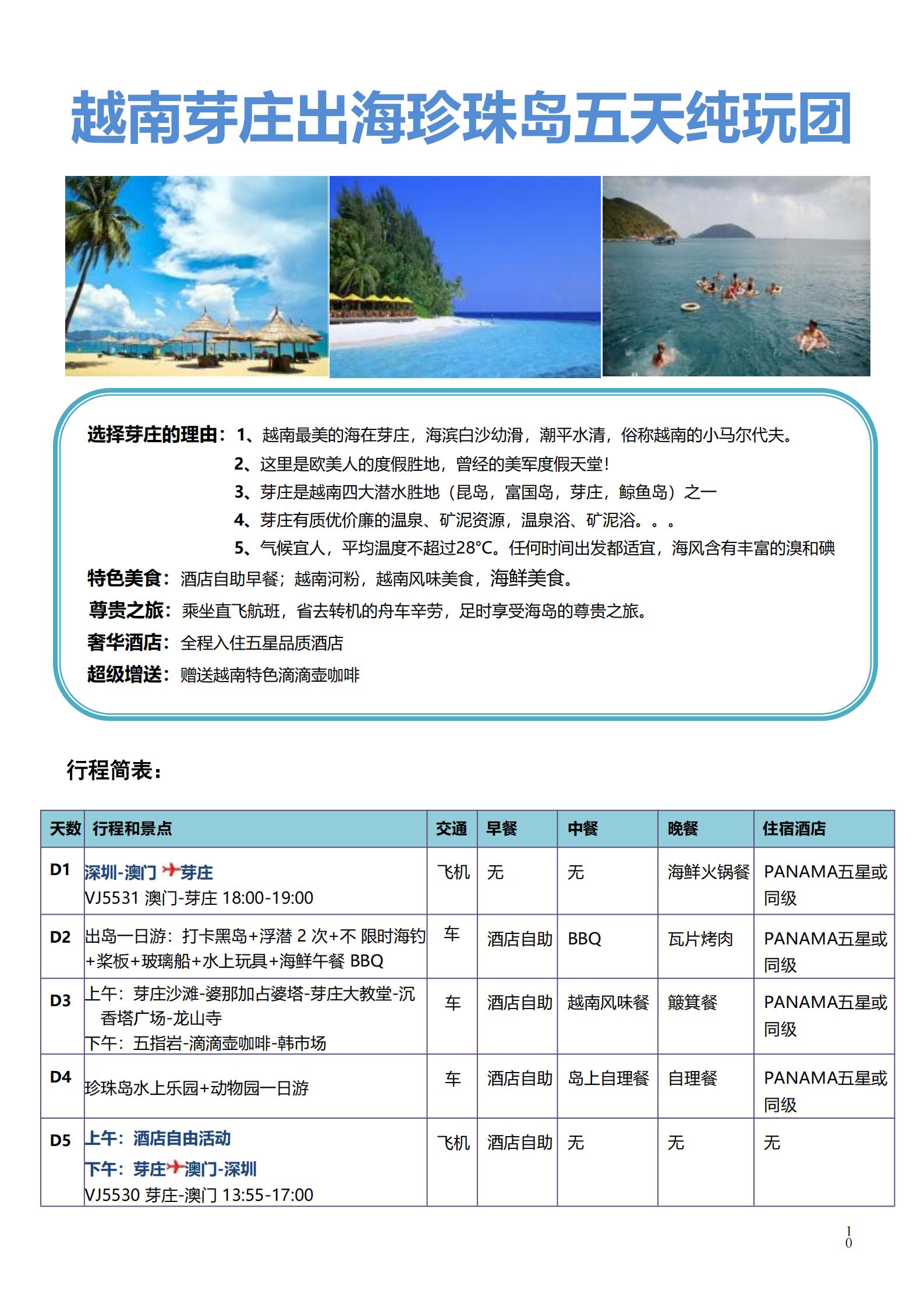 【五一】<越南芽庄出海+珍珠岛5天团>澳门直飞,深圳起止 商品图0