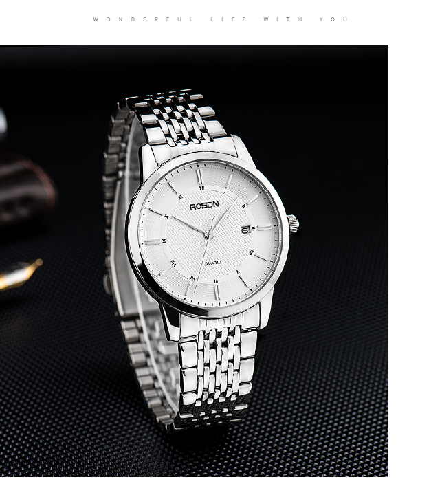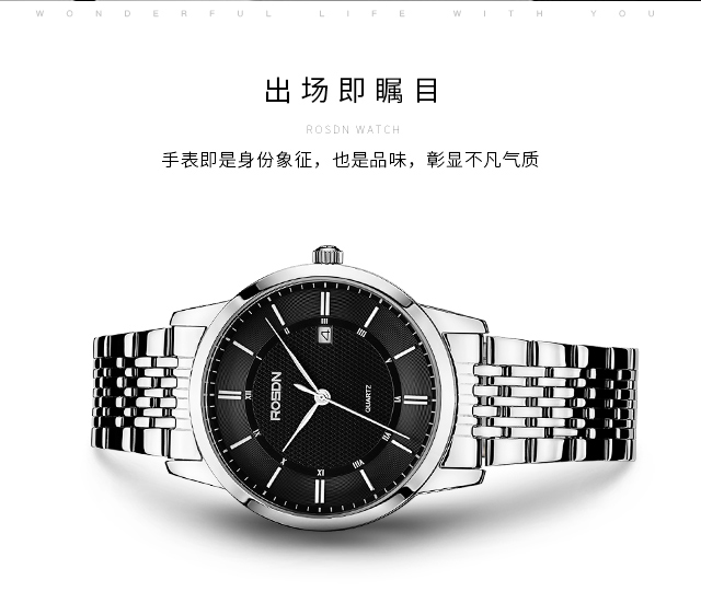 劳士顿(ROSDN)手表 石英情侣表钟表男表黑盘钢带 G3150S-TAB