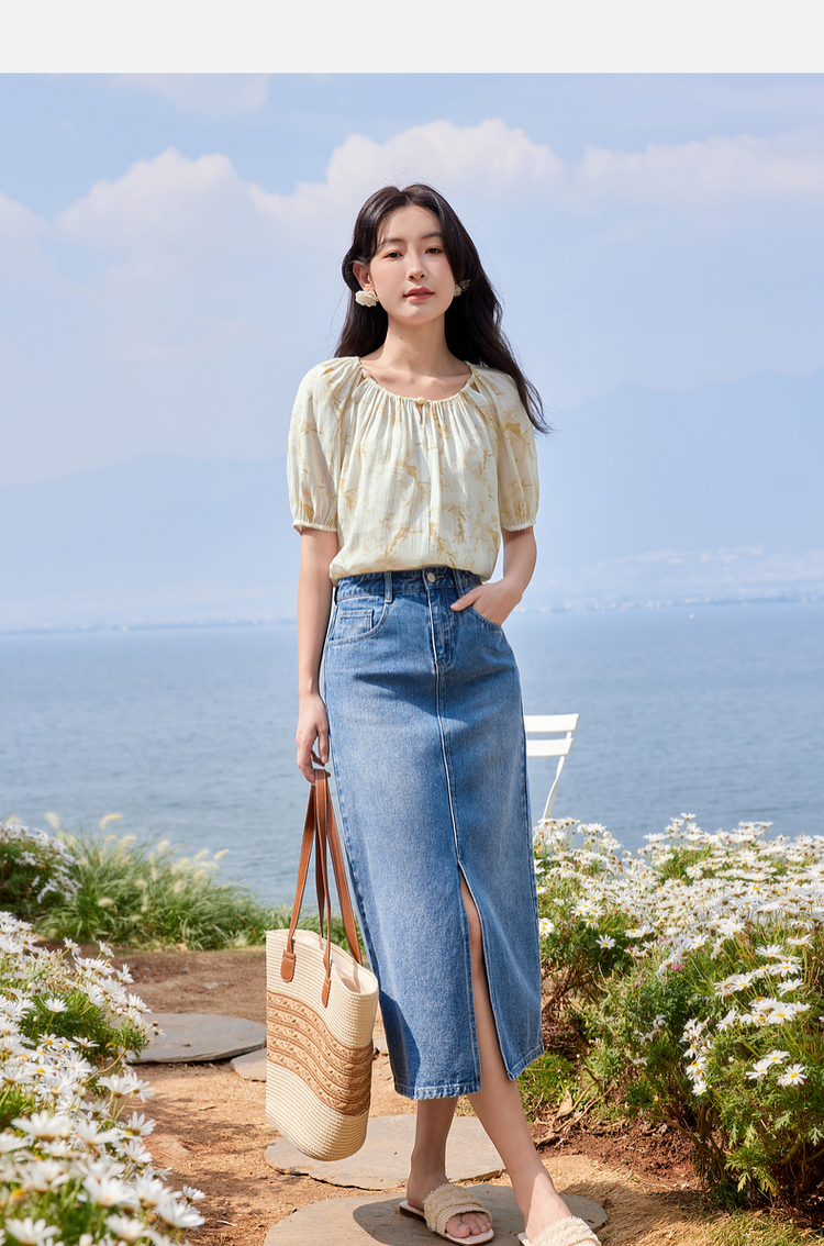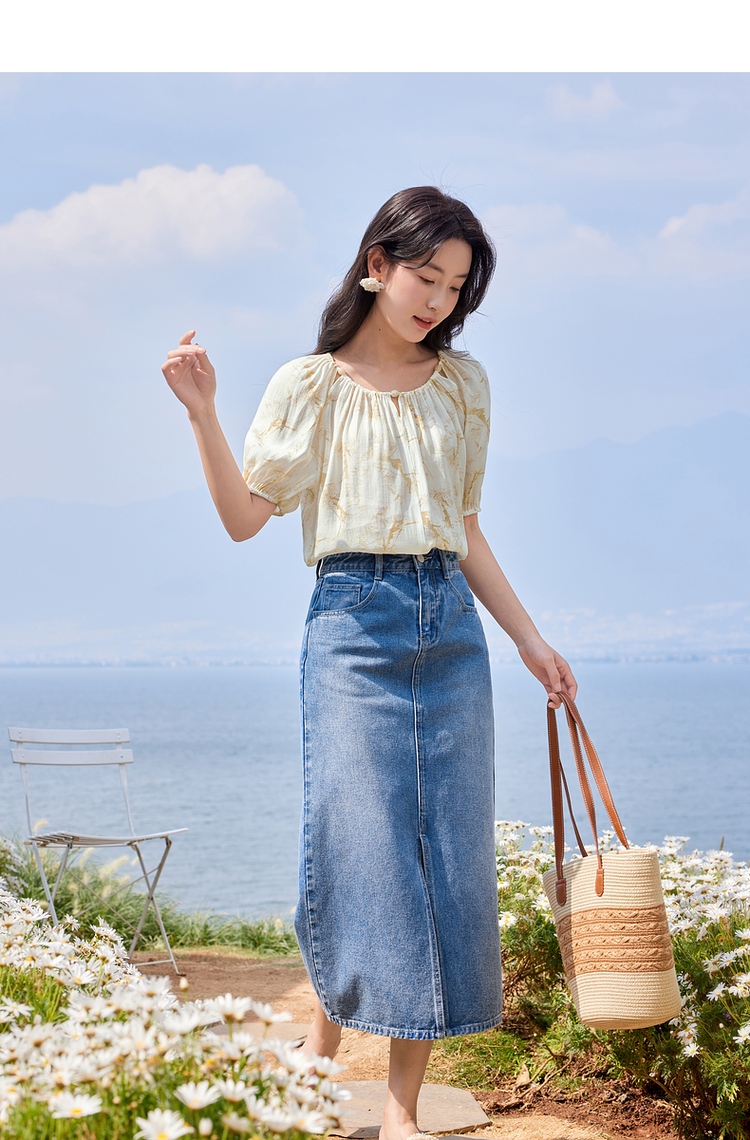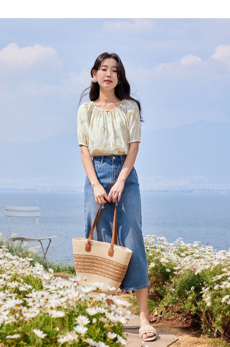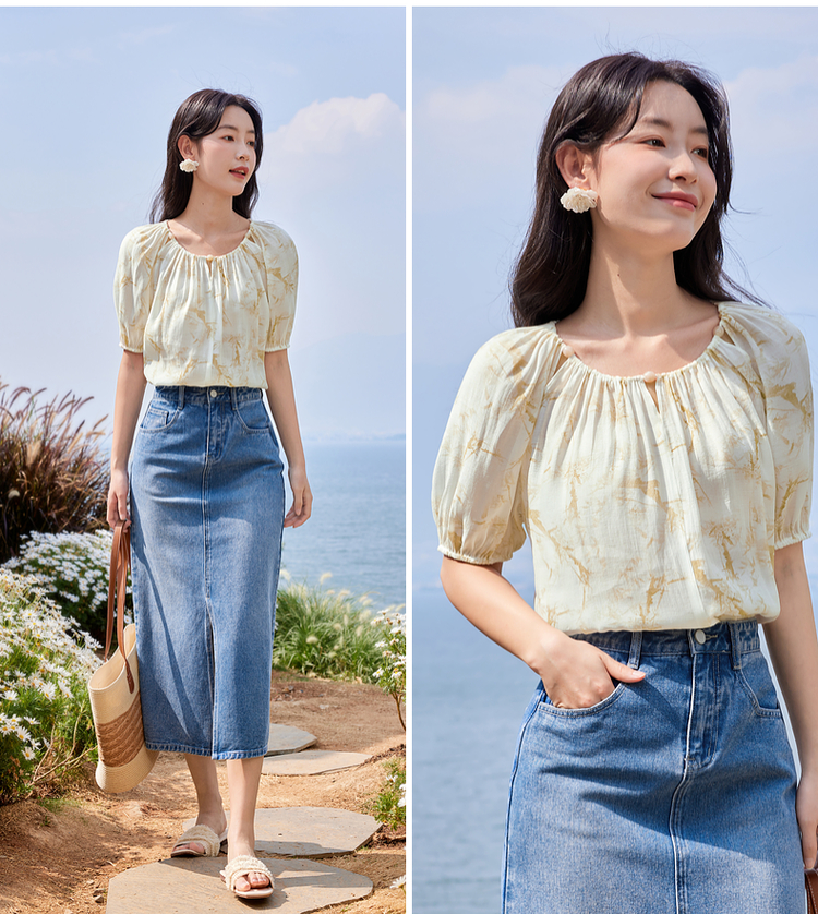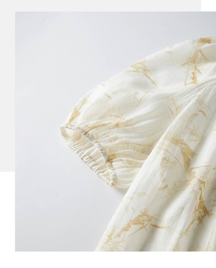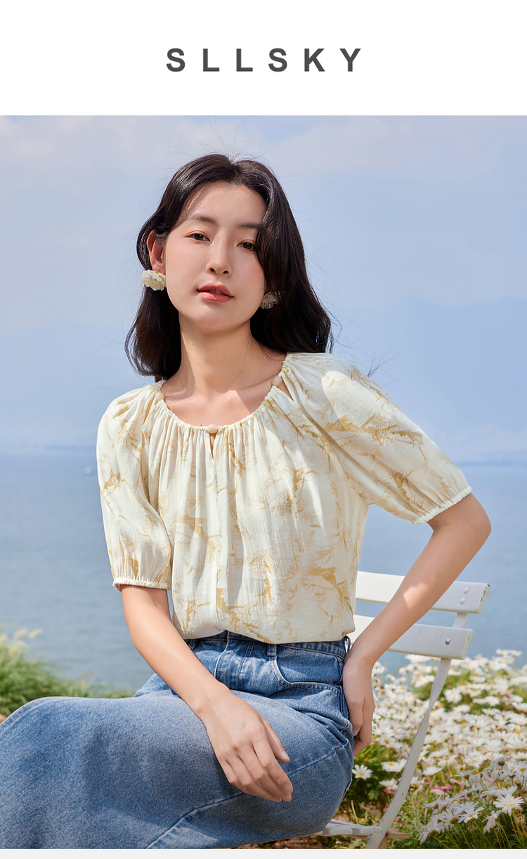 【专属特价】熙世界水墨晕染碎花雪纺衫2025夏季新款泡泡袖法式减龄气质上衣
