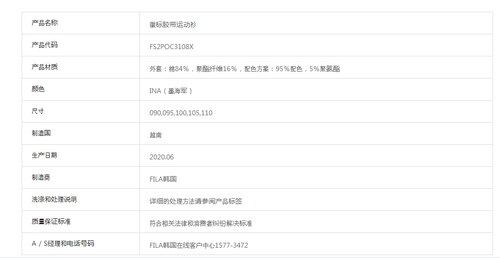 韩国F家斐乐胶带形标志棉T恤FS2POC3108X_INAJPY带授权招加盟代理
