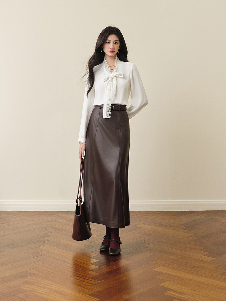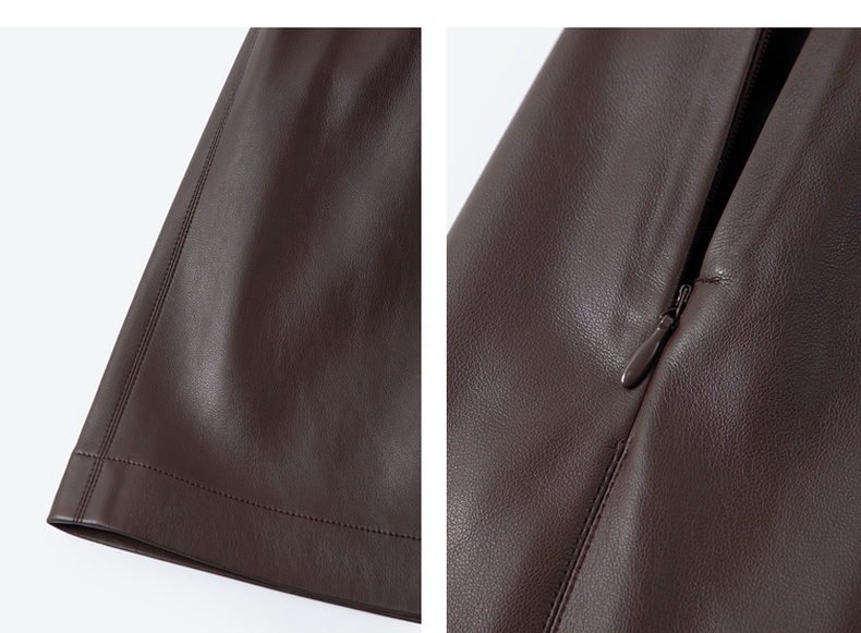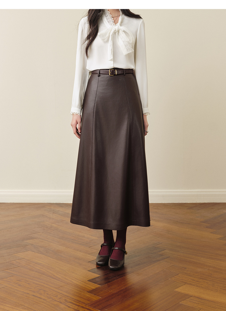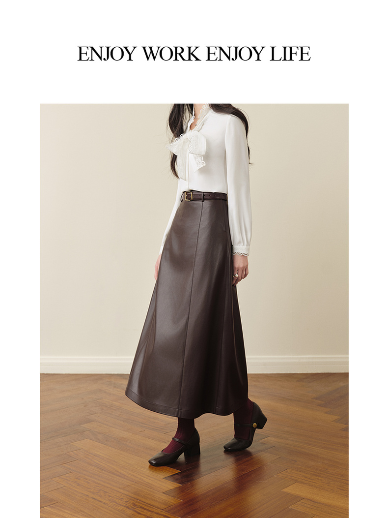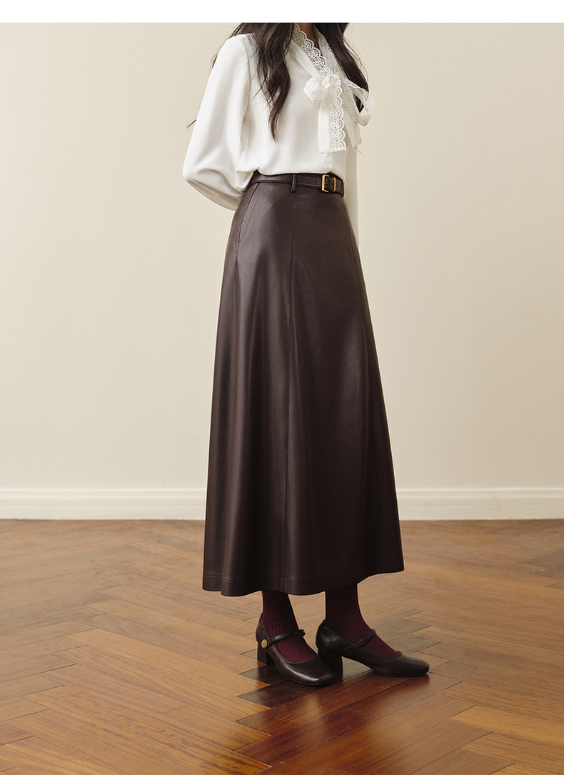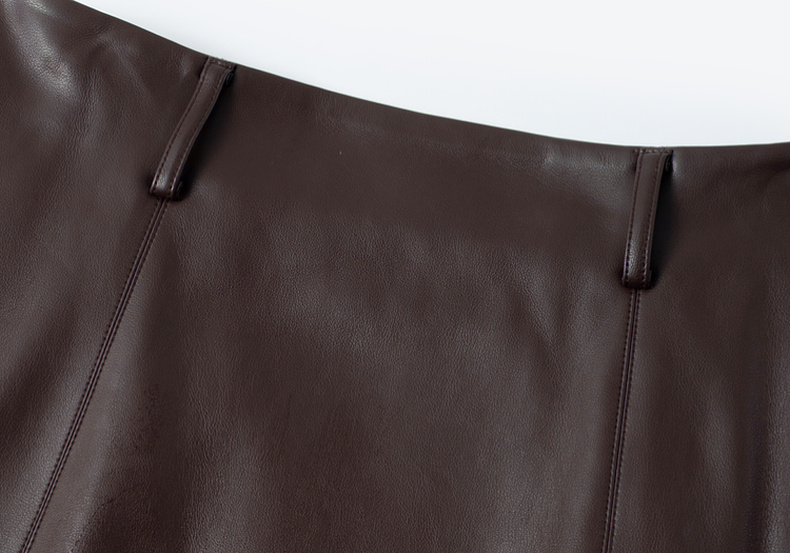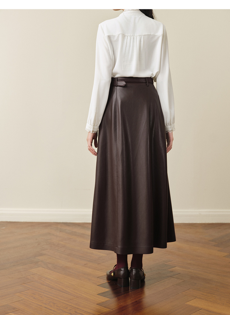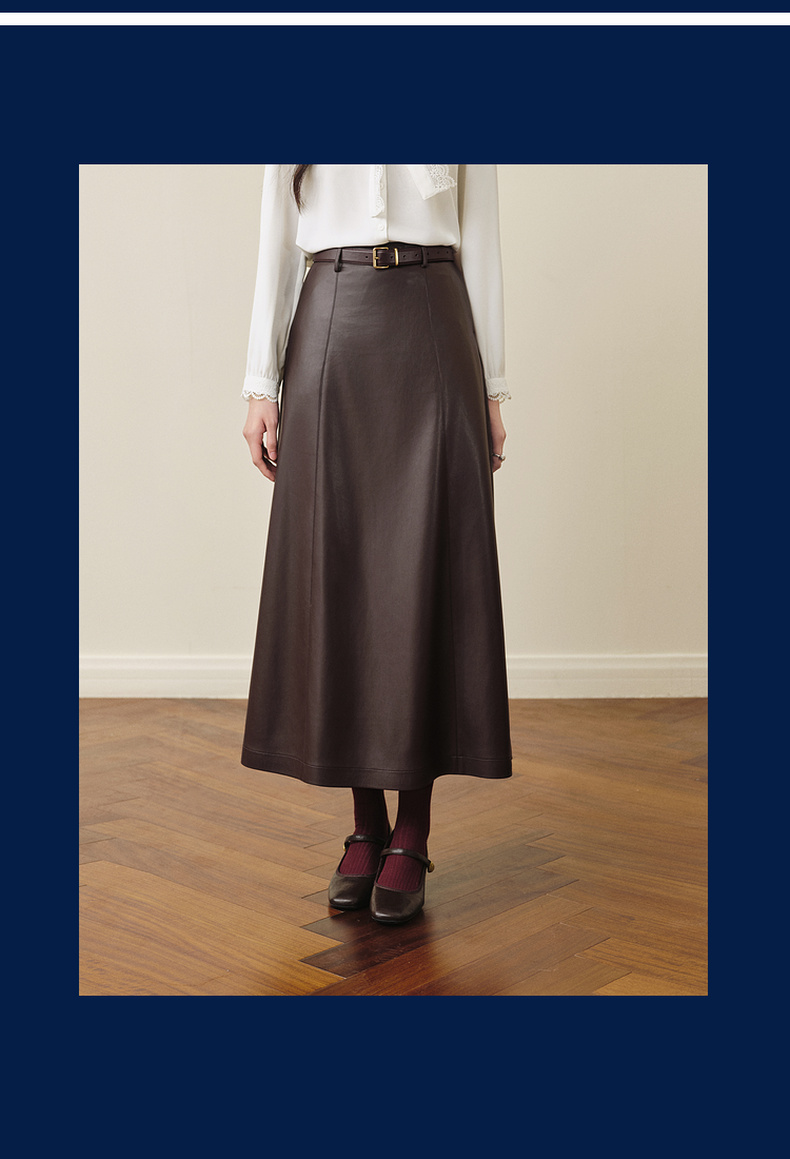 【严选】孟子义代言诗凡黎咖色PU皮半身裙2025秋新款A字高腰显瘦蛋白皮裙7G9141031