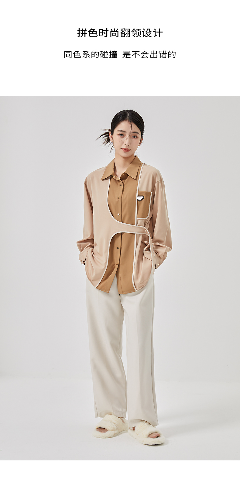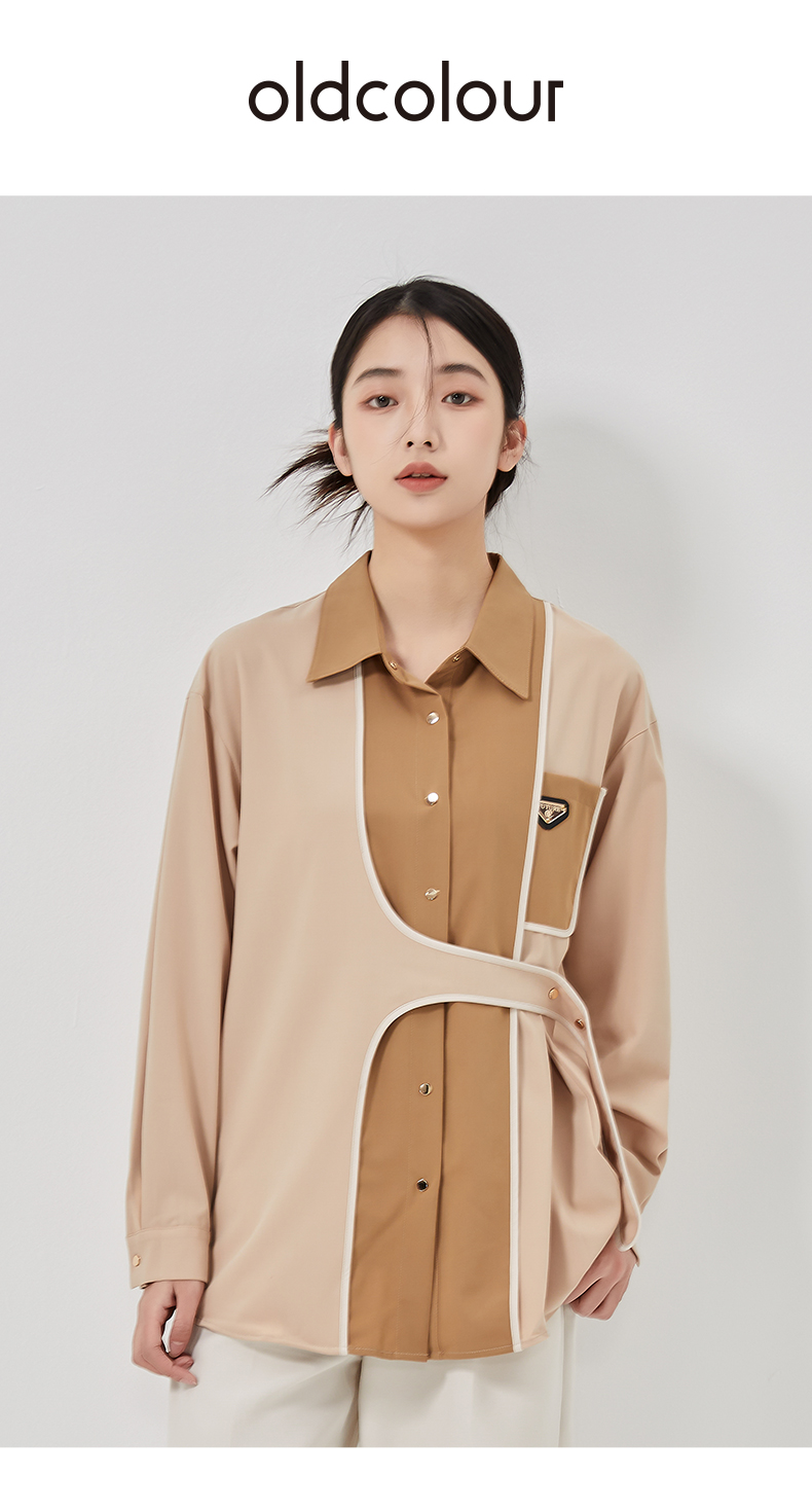 oldcolour2023春季新款法式设计感撞色长袖百搭衬衫女O13013305