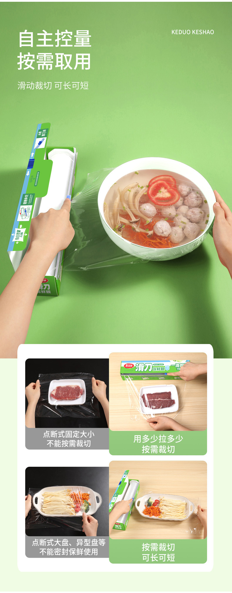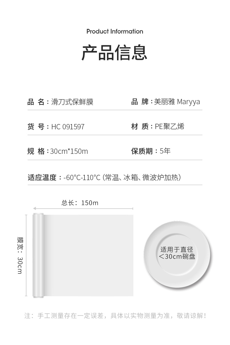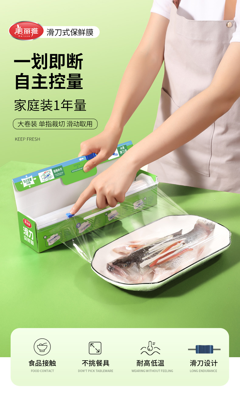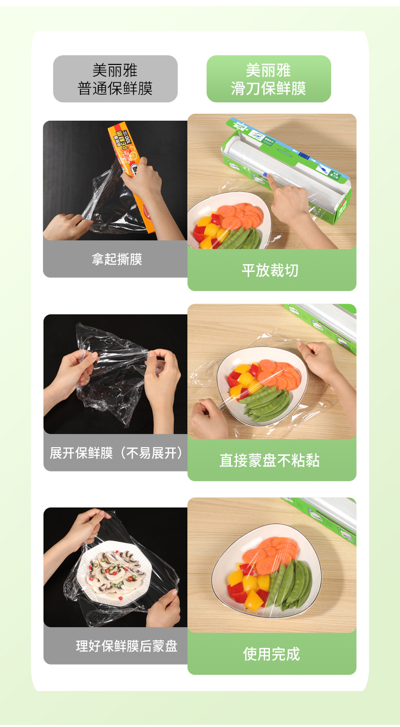 美丽雅滑刀式保鲜膜家用耐用易切割食品级