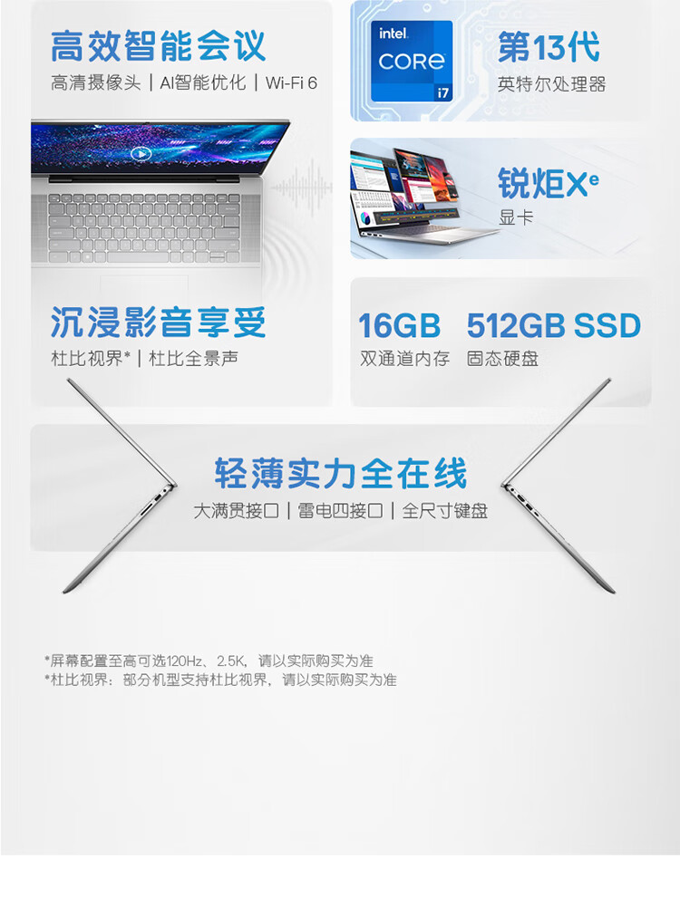 戴尔(DELL) 2023新灵越16pro笔记本电脑13代酷睿16英寸2.5K屏5630轻薄家用办公 i5-1340P/16G/512G/2.5K