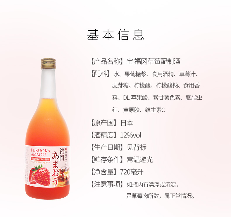 宝酒造福冈草莓配制酒原装进口TaKaRa女士利口甜果酒720ml佐餐酒 LFYC
