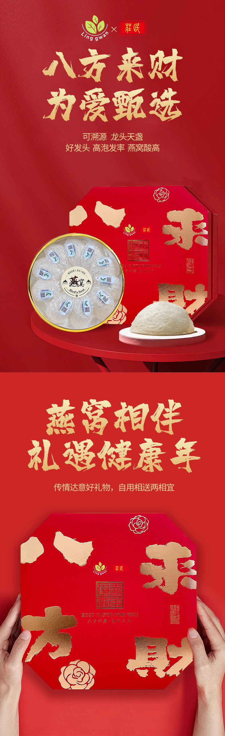 【八方来财】臻品礼盒7A燕盏精美礼盒 马来精选干燕窝燕盏礼盒100g 送礼必备好货 顺丰包邮