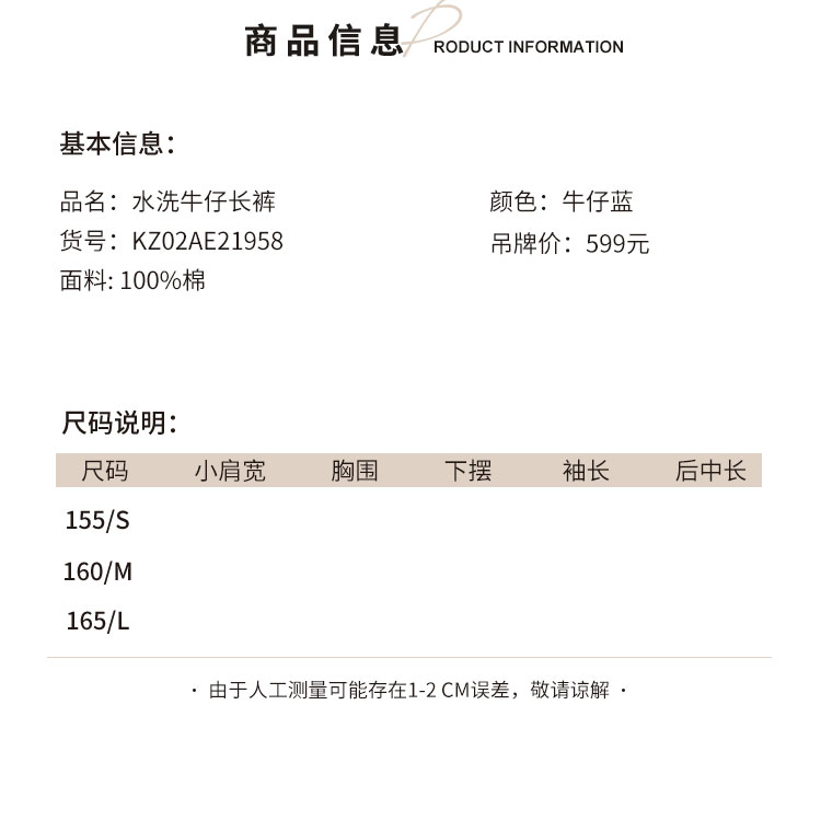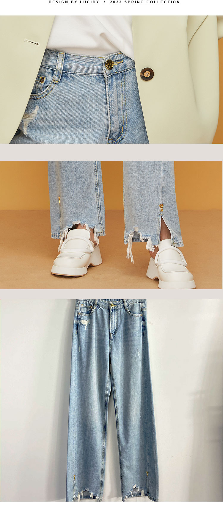 Lucidy-鲁思蒂 2022春 水洗牛仔长裤 KZ02AE21958