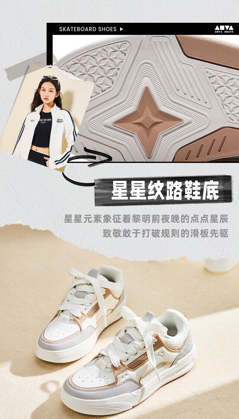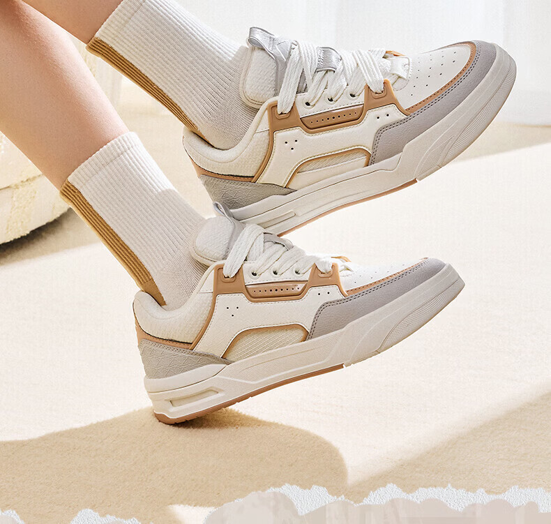安踏(ANTA)骜杰 4丨【王一博同款】经典百搭复古潮流运动鞋女板鞋象牙白/燕麦奶棕/一度灰122618043 -2