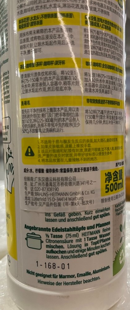 海特先生(HEITMANN™)纯柠檬酸除垢液(液体)500ml