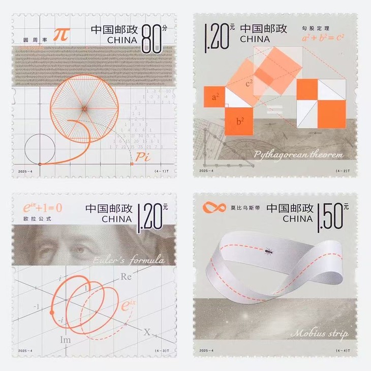 中国邮政定于2025年3月14日发行《数学之美》特种邮票1套4枚,全套邮票面值4.70元。