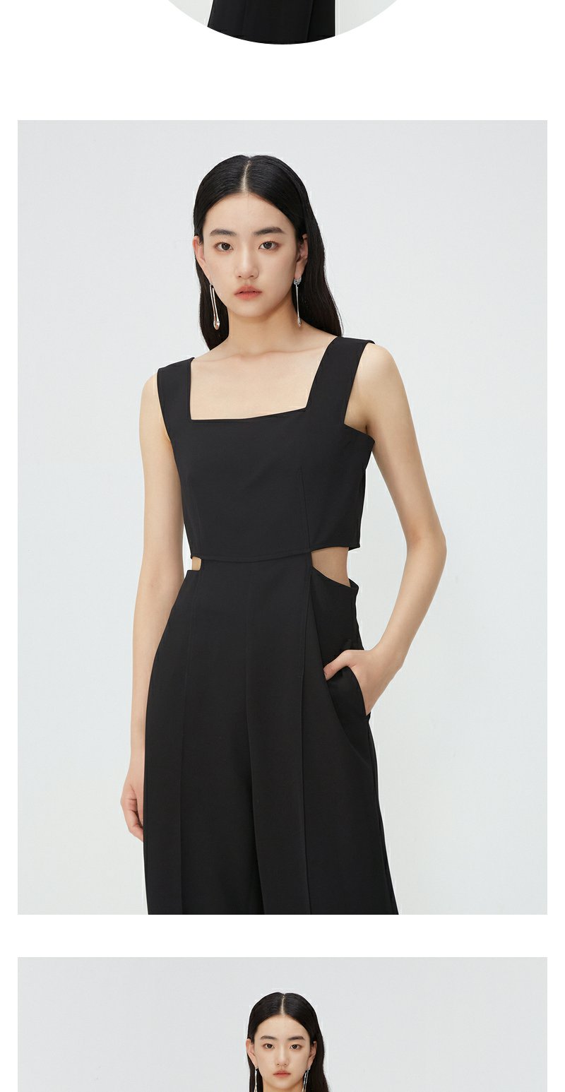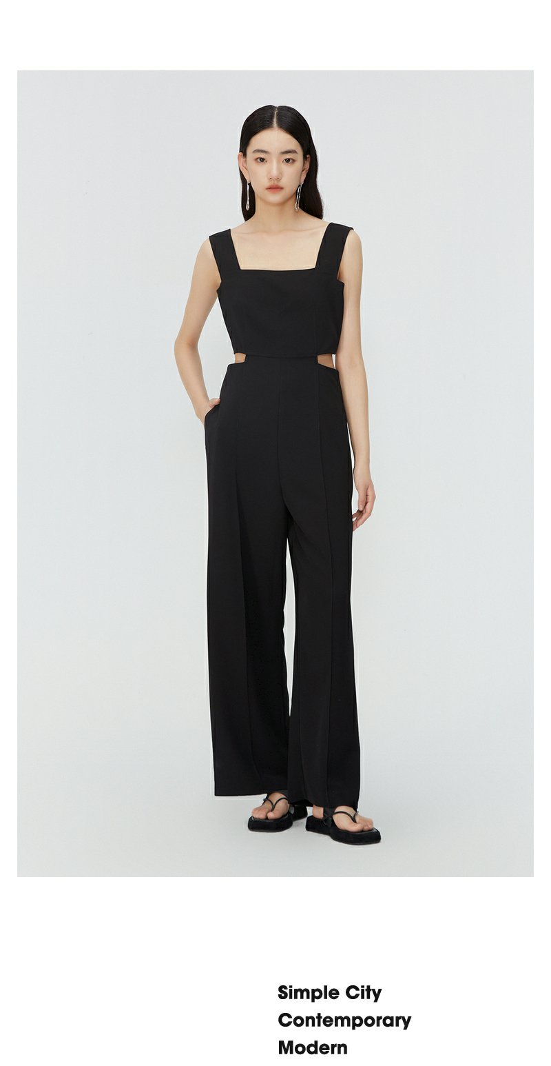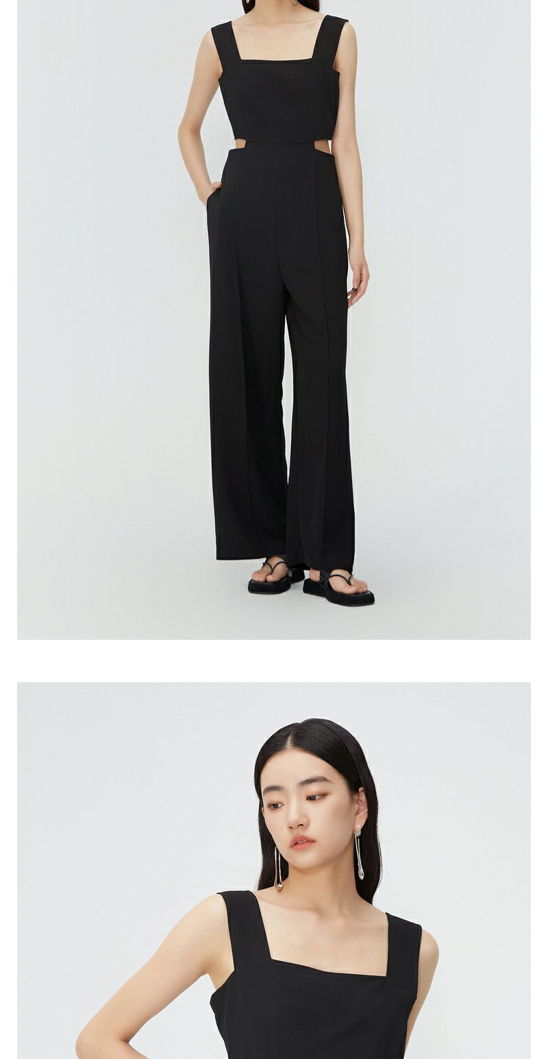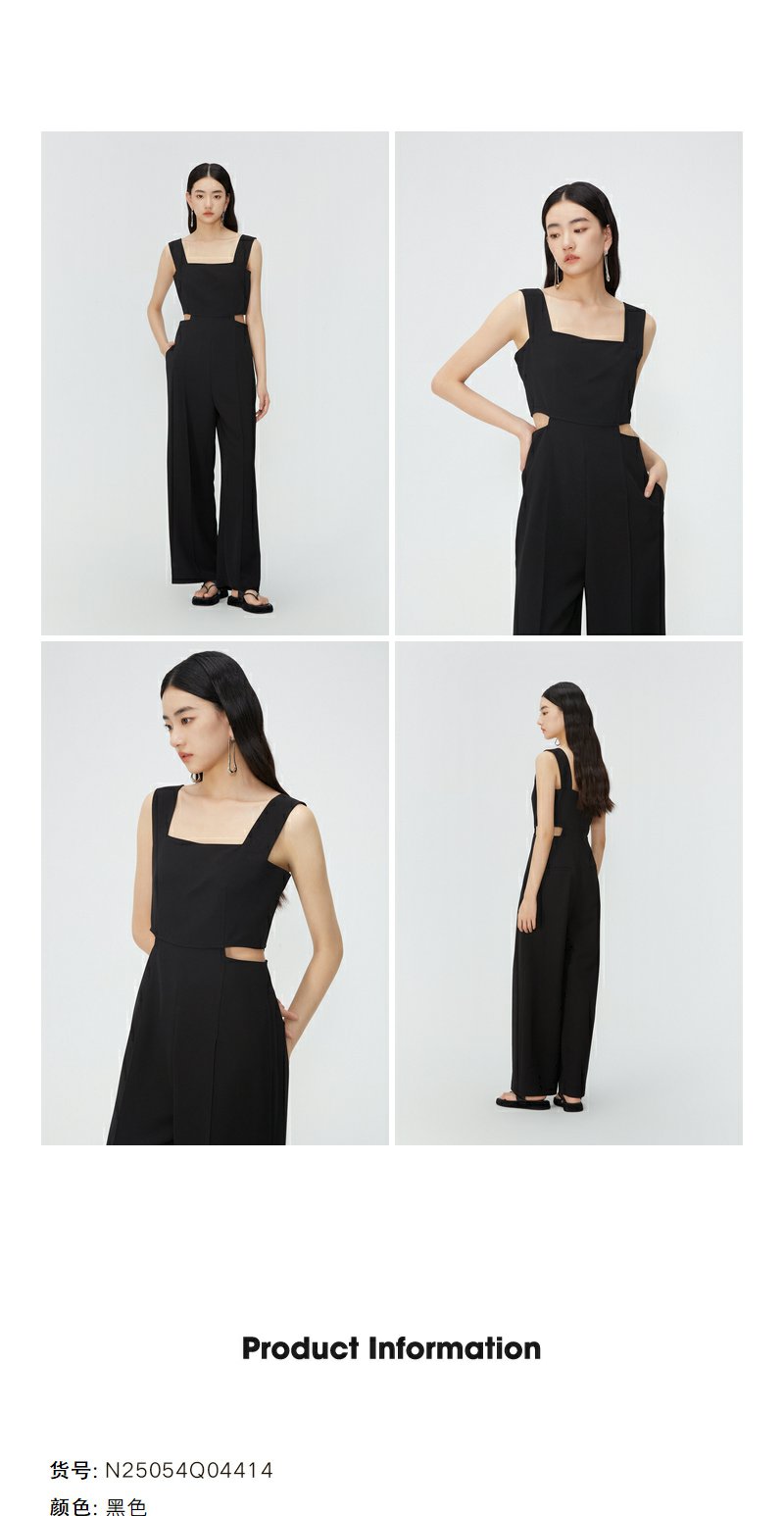 NEELLY纳俪商场同款夏新款黑色无袖镂空高腰连体裤女直筒垂感长裤N25054Q04414