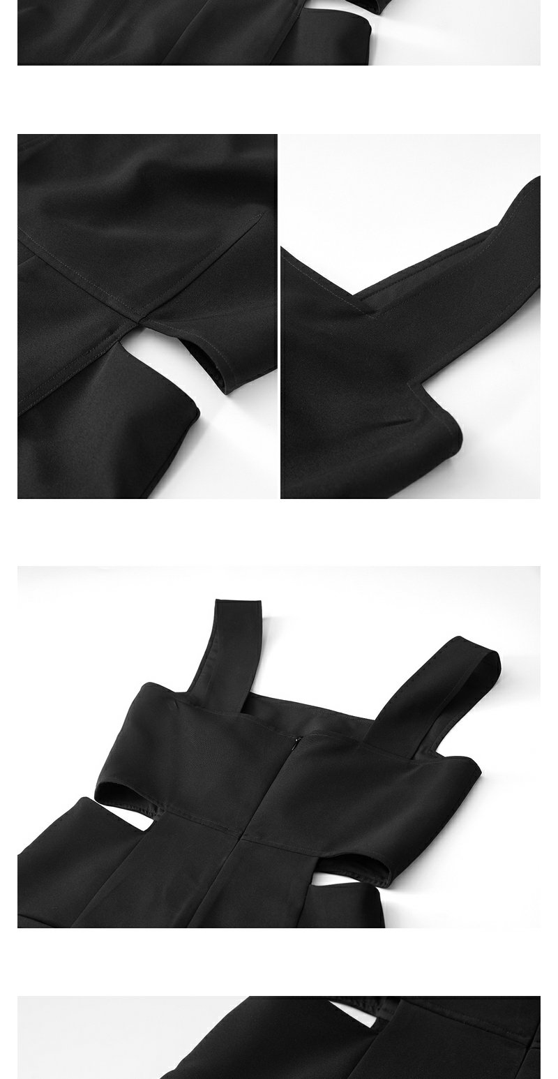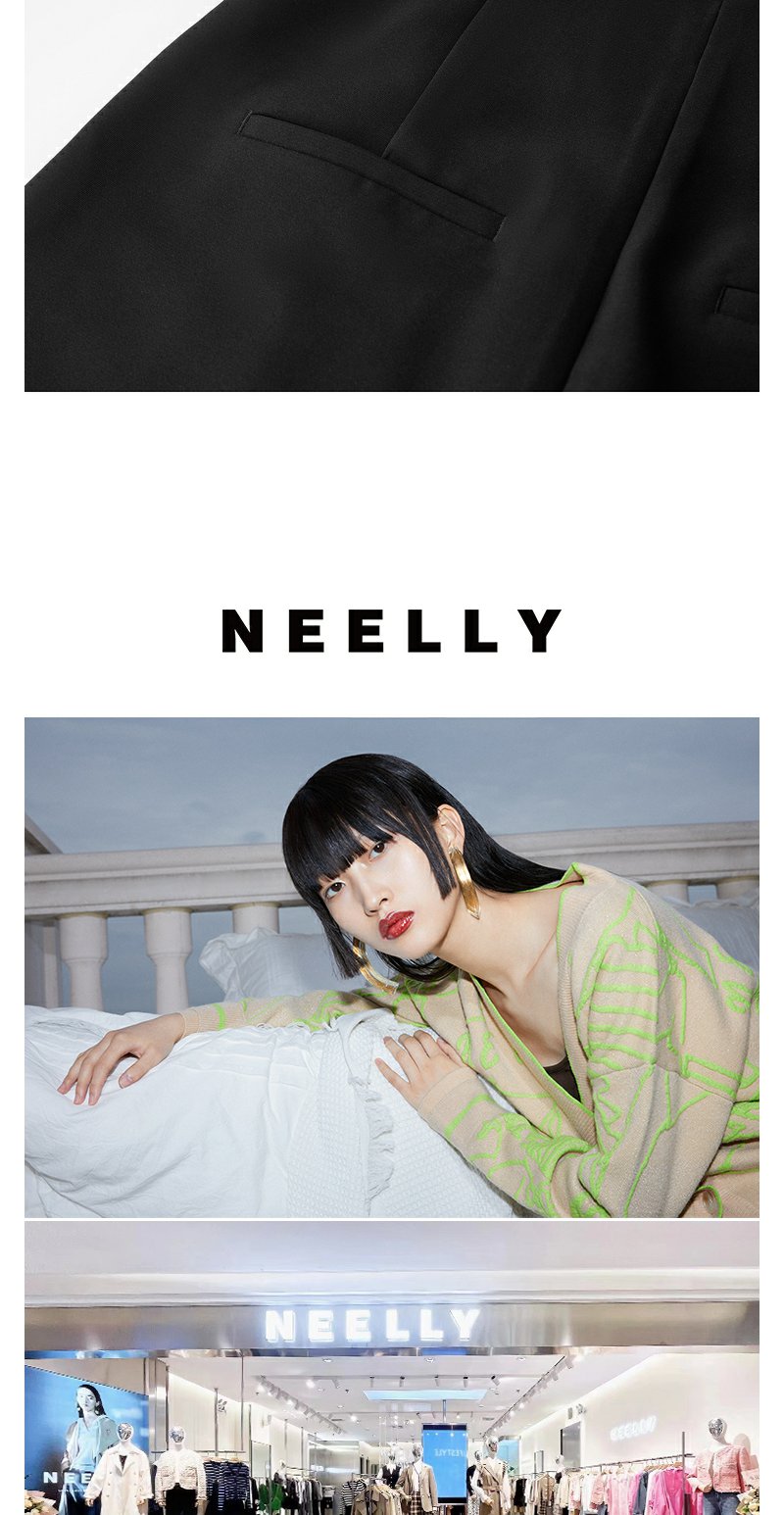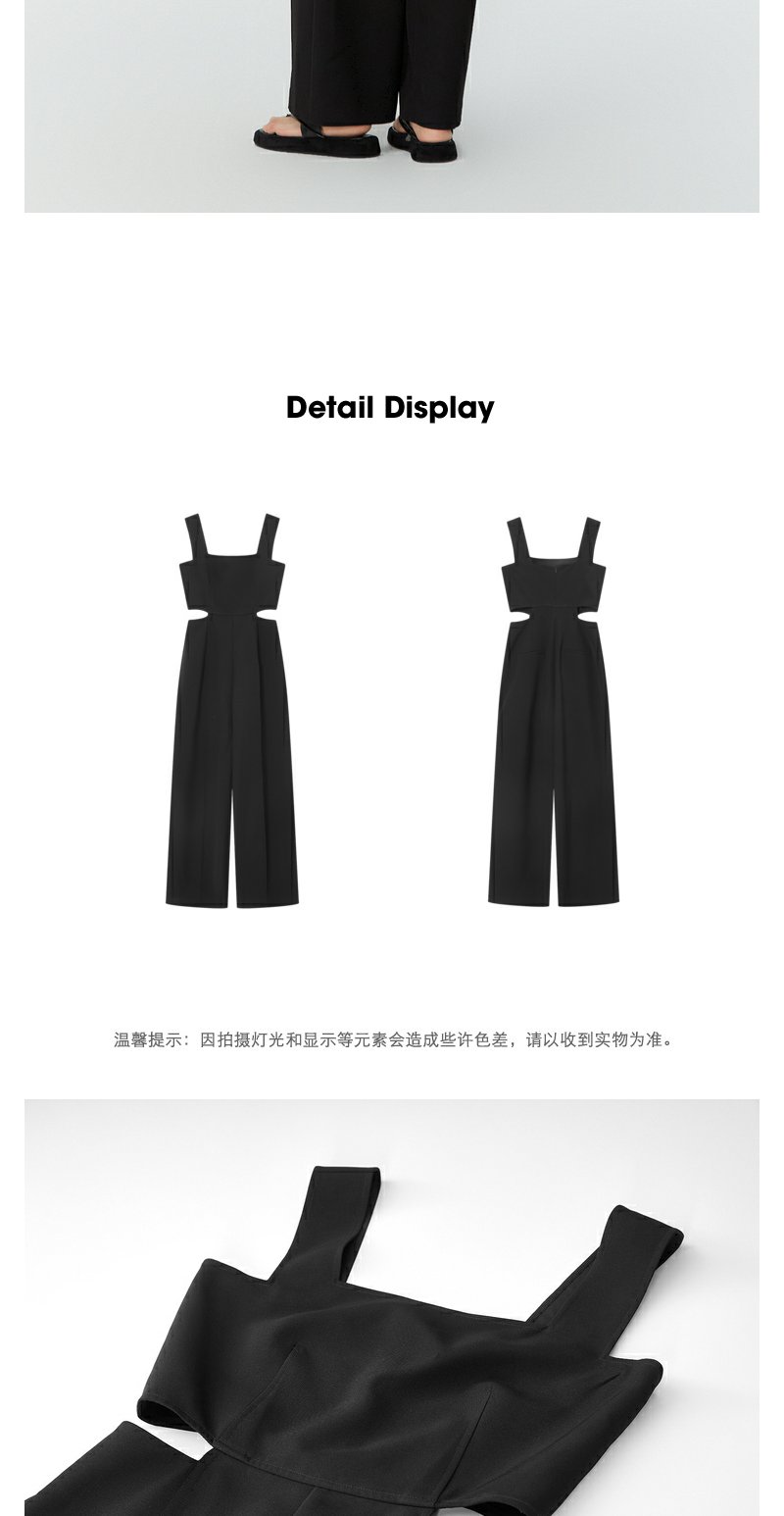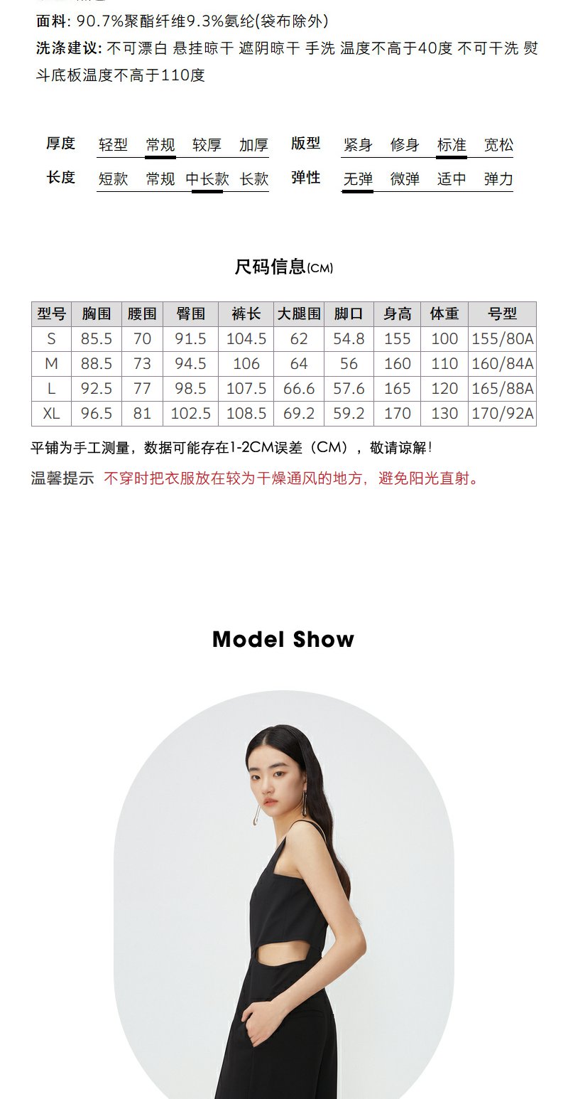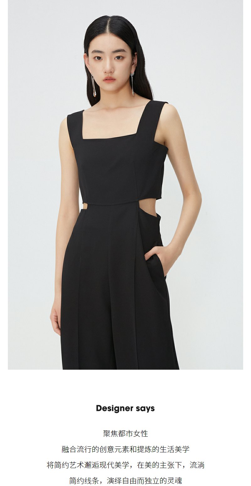 NEELLY纳俪商场同款夏新款黑色无袖镂空高腰连体裤女直筒垂感长裤N25054Q04414