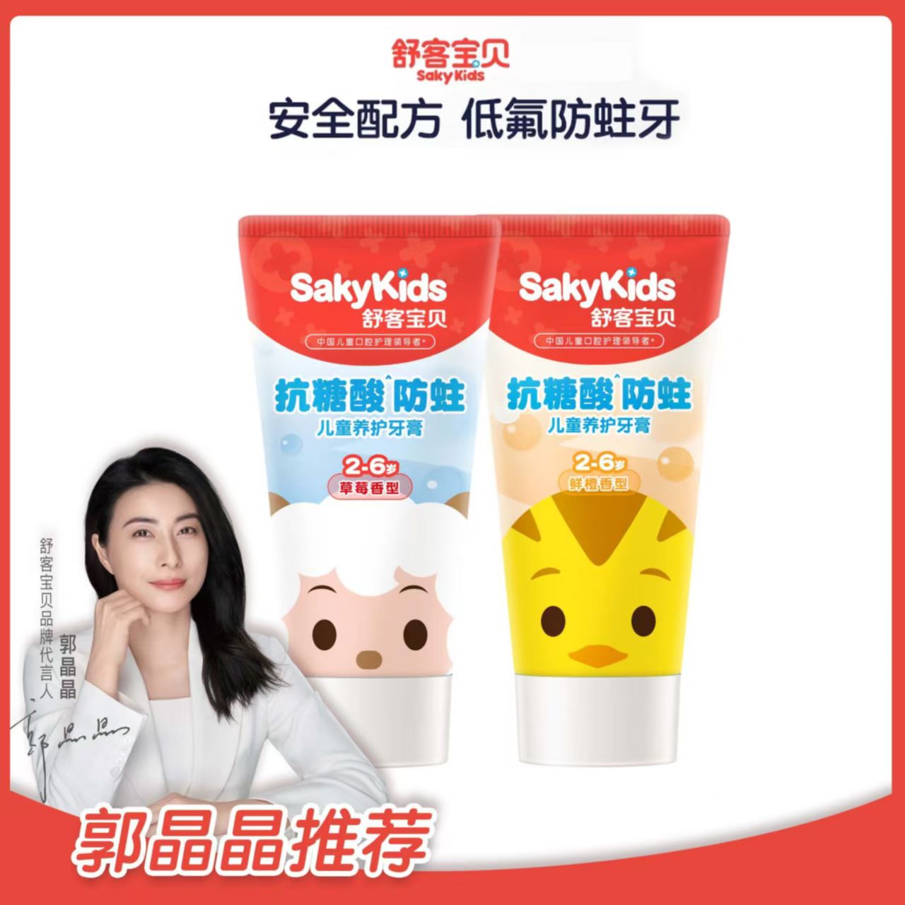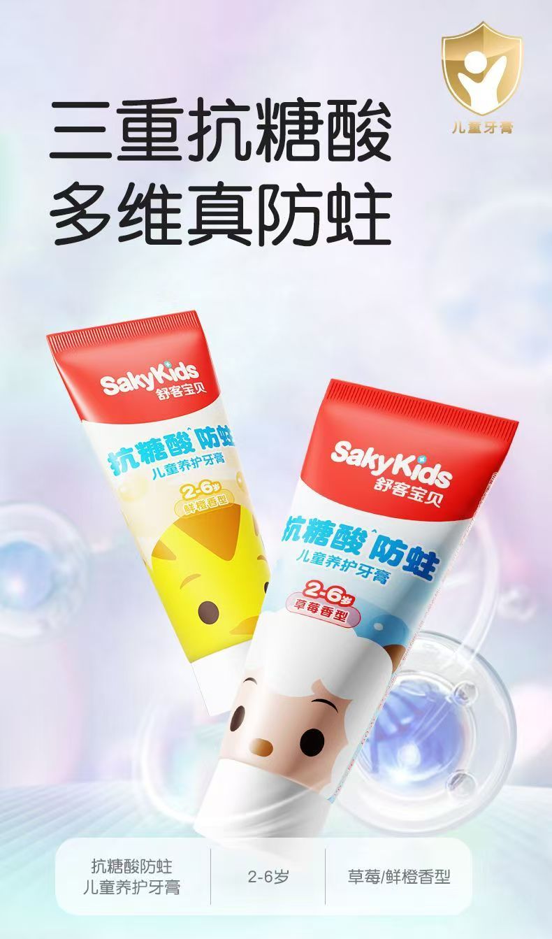 舒客宝贝2-6岁抗糖酸、防蛀儿童养护牙膏2-6岁(草莓味、甜橙味新老包装随机发货)-1198